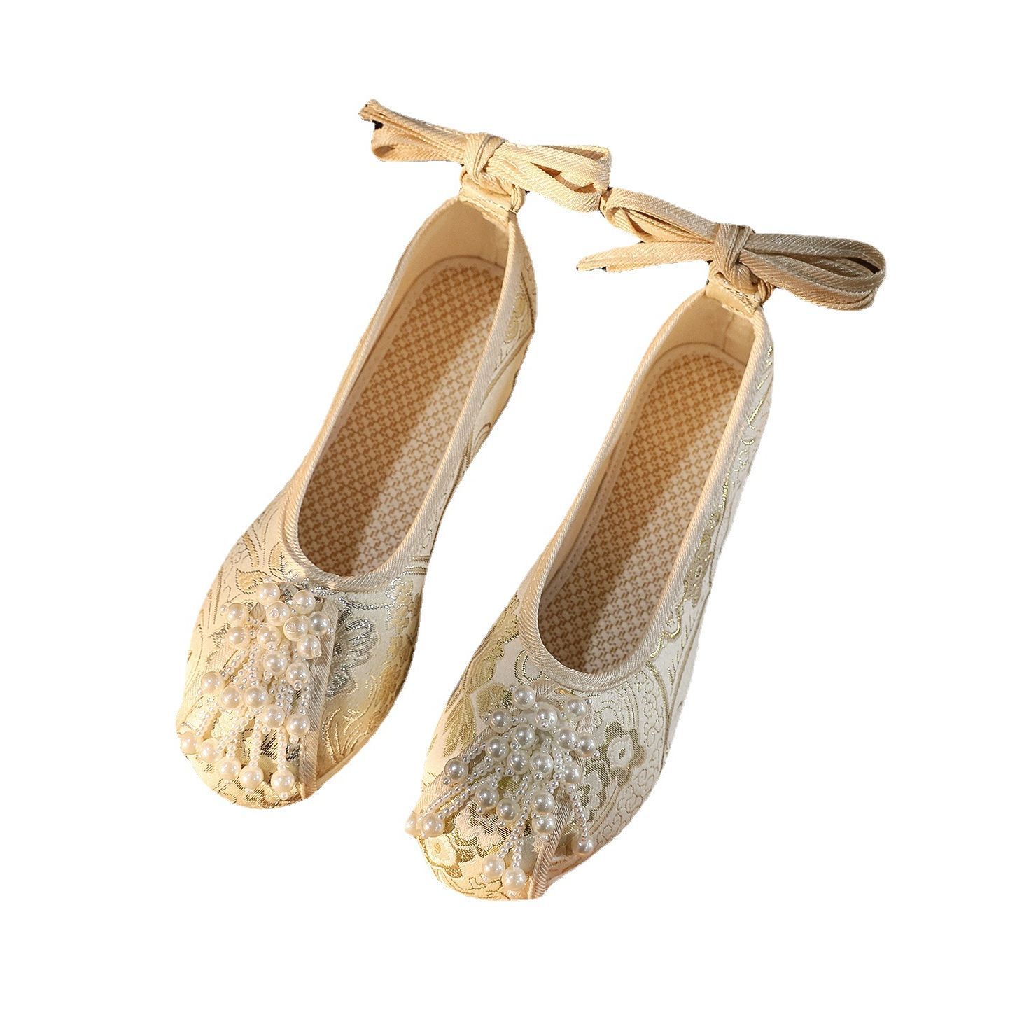 原创正品表演女鞋中国风汉服鞋配旗袍平底大小码单鞋绣花布鞋春季