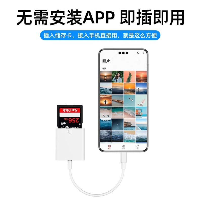 相机读卡器sd卡适用苹果华为索尼佳能尼康iPhone口传输线手机tf内存OTG转换器typec转接头ccd连接直传ms卡tpc