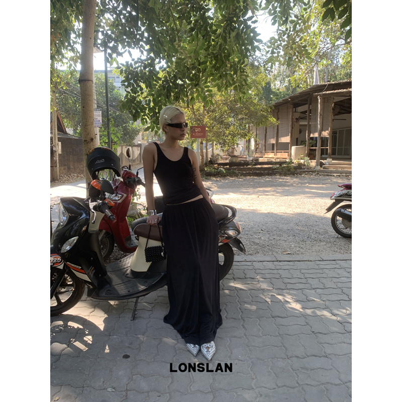 LONSLAN 2025春夏新款法式高级感修身吊带背心短袖半裙三件套女