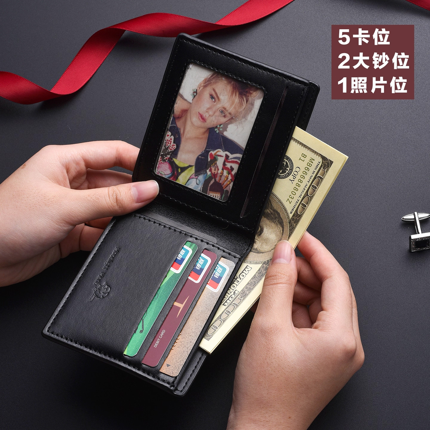 时尚简约钱包男士2026新款年轻人超薄便携证件短款卡包钱夹大容量