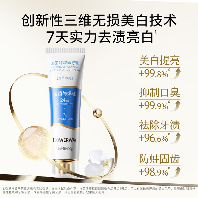 溶菌酶清新牙膏香氛持久口气色修美白口腔口臭水薄荷爆珠亮白去渍