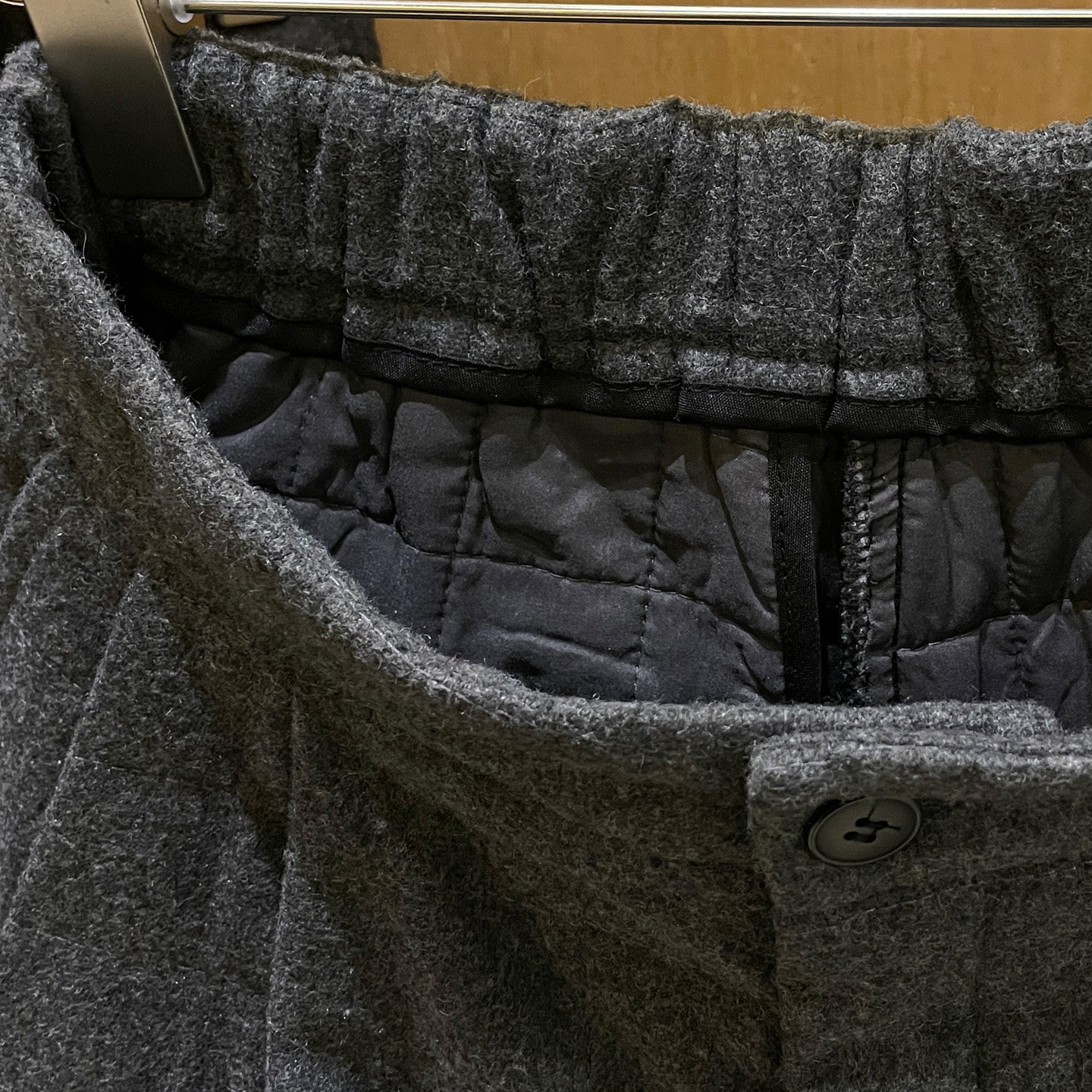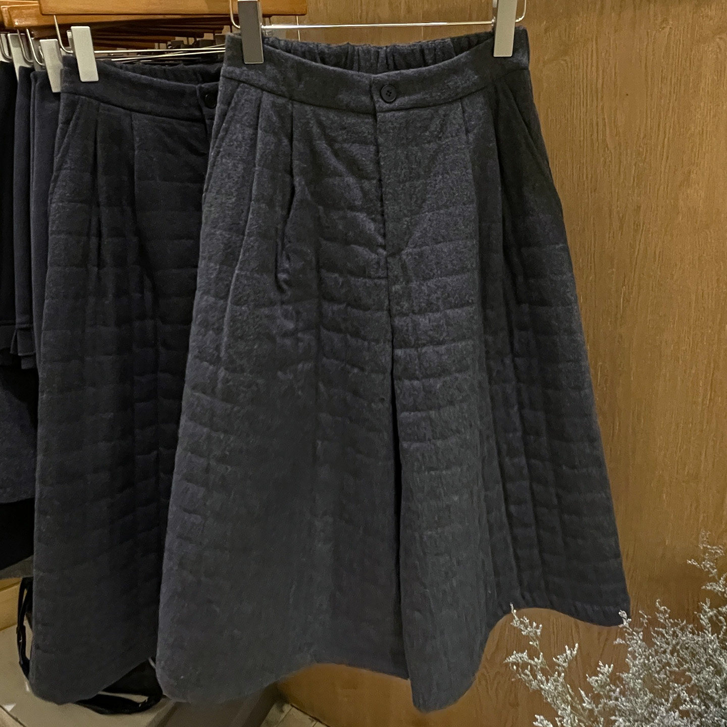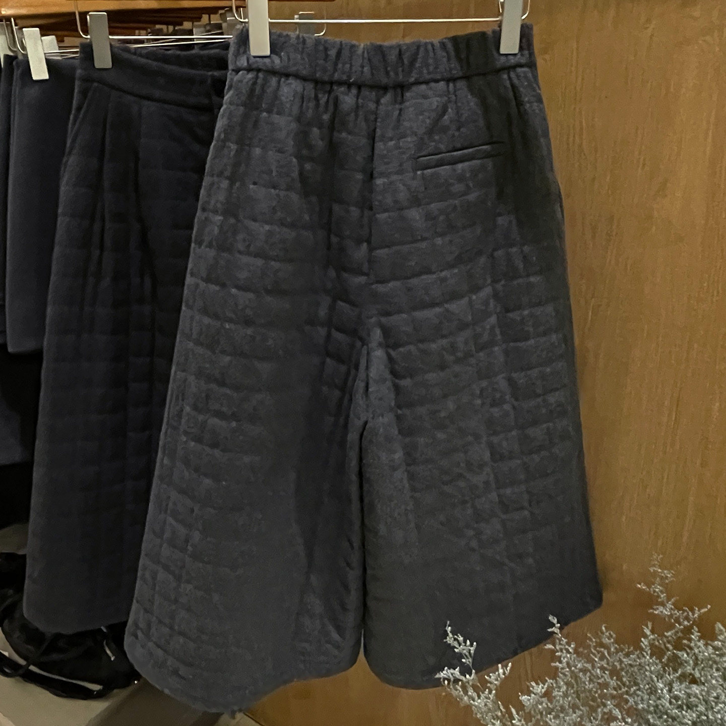 后松紧腰绗线方格毛呢阔腿裤女七分裤2025冬新款韩版洋气夹棉裤子