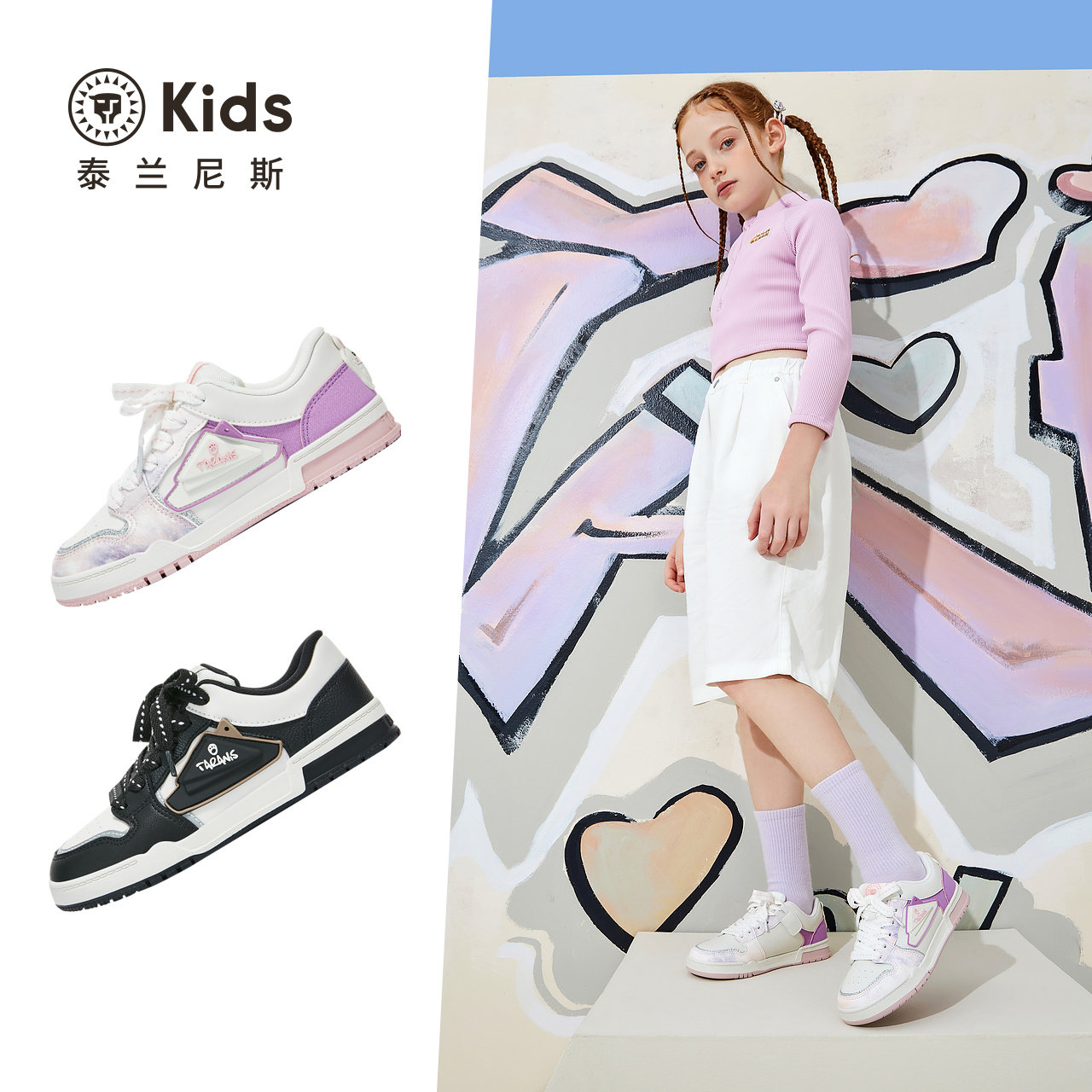 泰兰尼斯kids春季款儿童滑板鞋中大童低帮运动鞋男女童时尚休闲鞋
