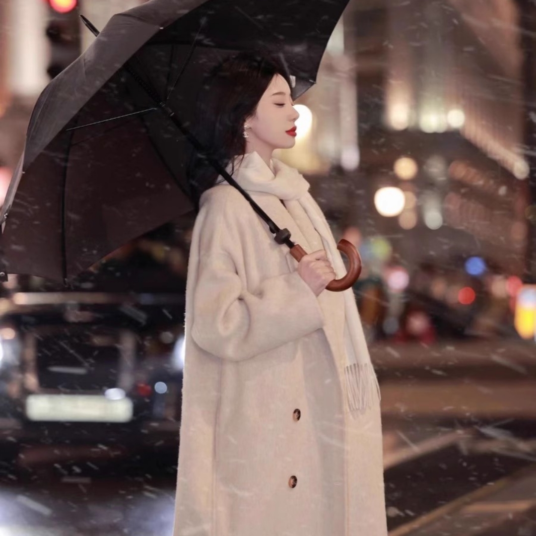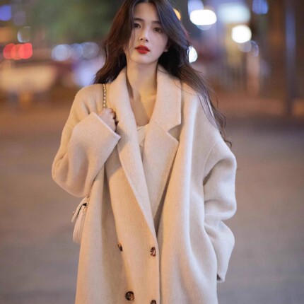 2024年秋冬新款双面呢羊绒羊毛大衣女中长款宽松韩版茧型毛呢外套