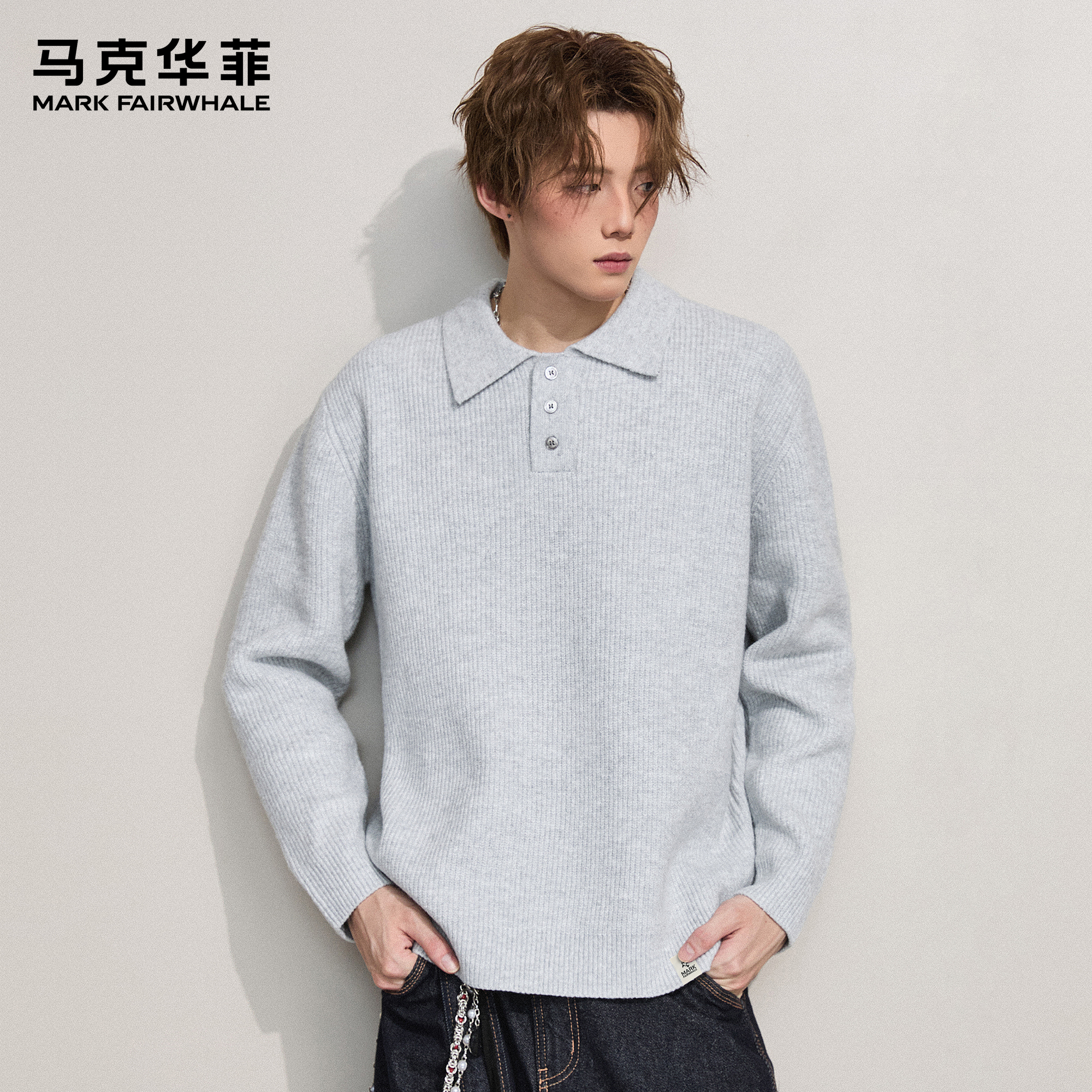马克华菲轻熟风针织衫男秋冬潮牌美式复古重磅保暖青少年翻领毛衣