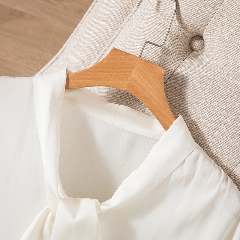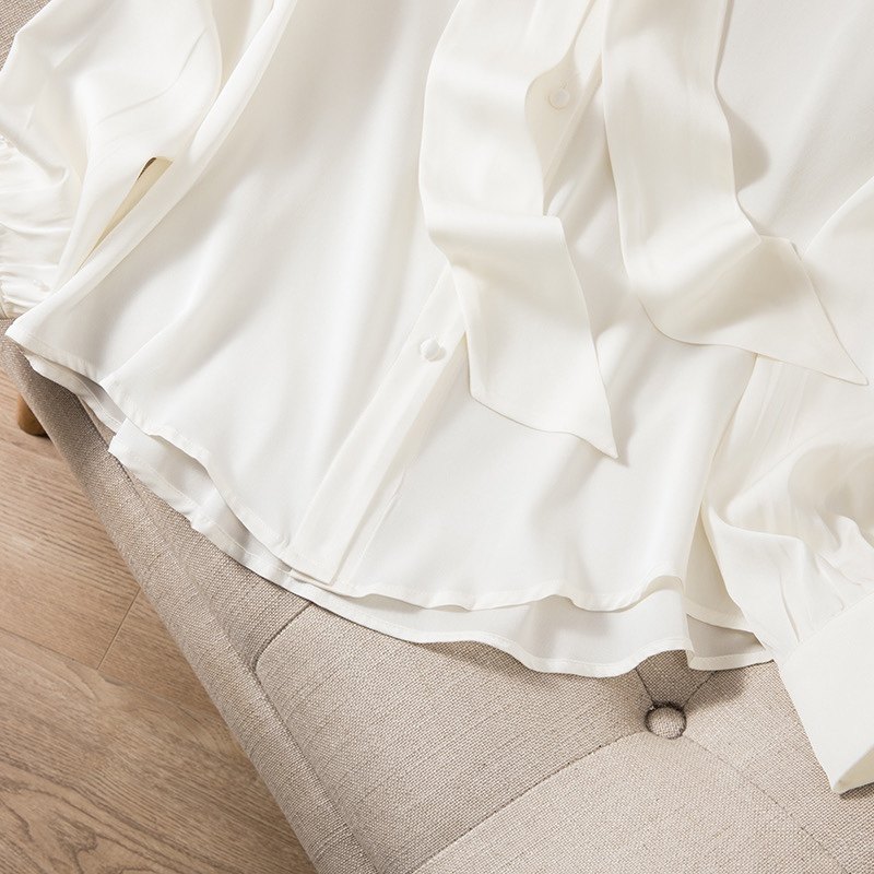 长袖桑蚕丝衬衣春夏飘带