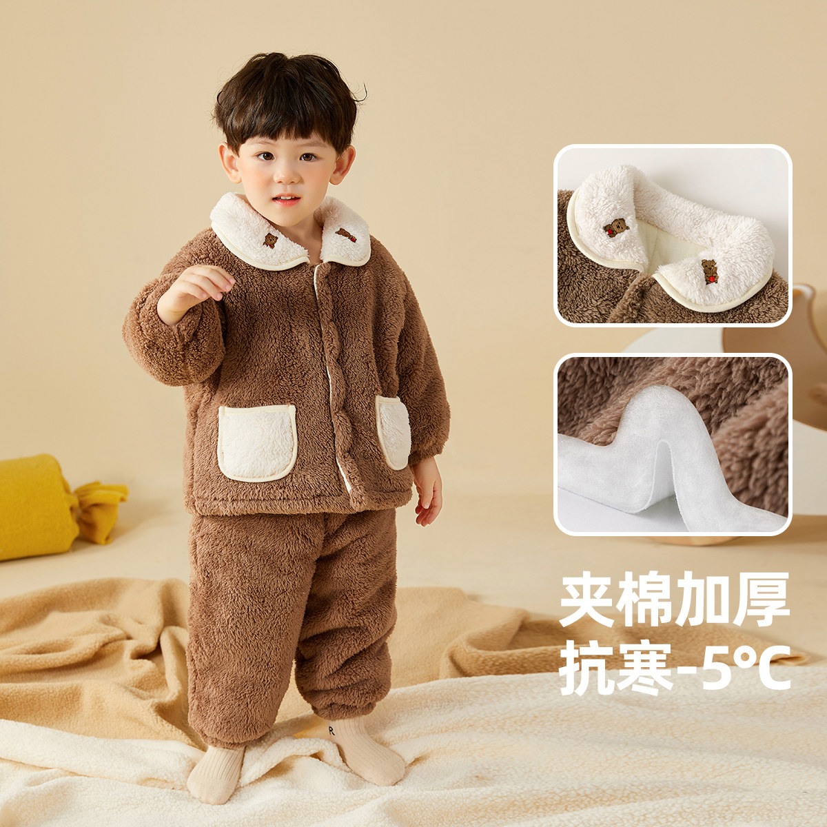 嘟嘟家宝宝珊瑚绒睡衣套装冬季儿童家居服男童加厚女童保暖秋冬装