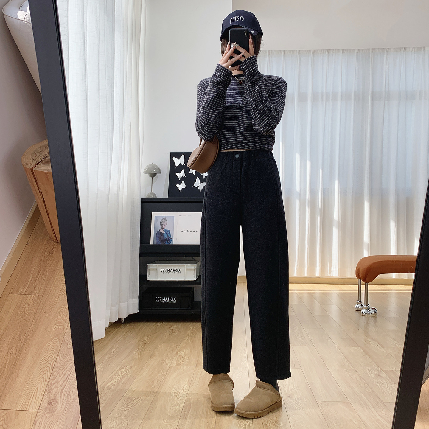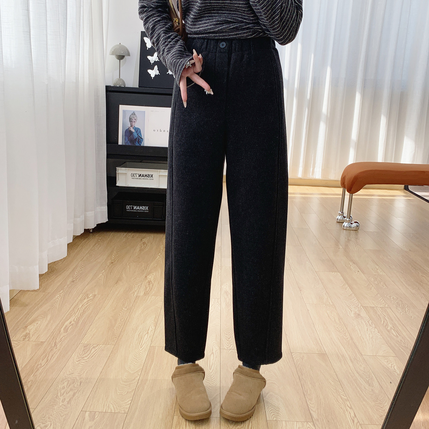 松紧腰加厚加绒休闲裤女秋冬2025新款裤子宽松显瘦萝卜哈伦裤冬季