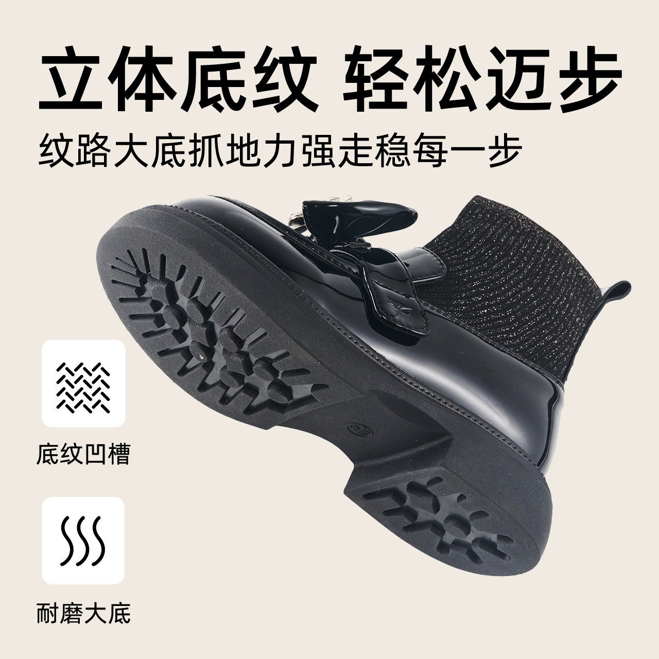 红蜻蜓女童鞋秋季新款儿童公主袜靴皮靴蝴蝶结短靴水钻时装靴子