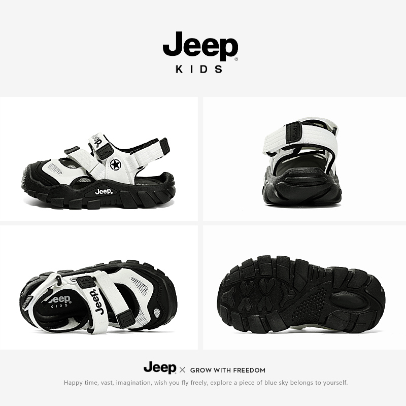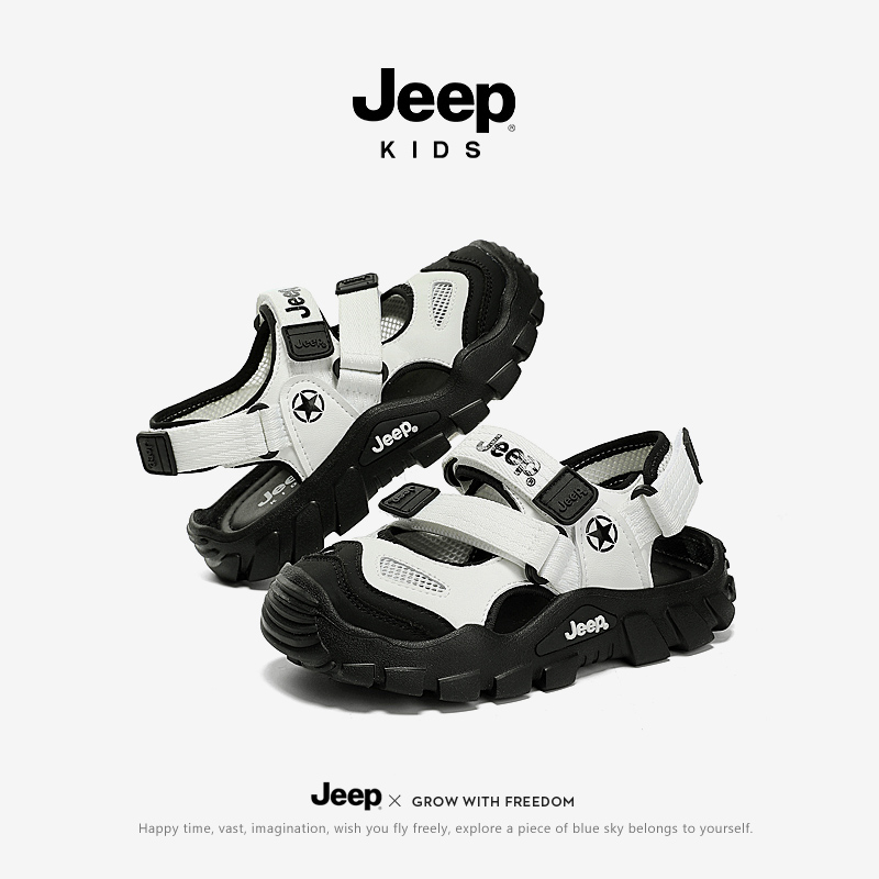 JEEP儿童包头凉鞋男童女童夏款透气网面中大童防滑涉水溯溪鞋男孩