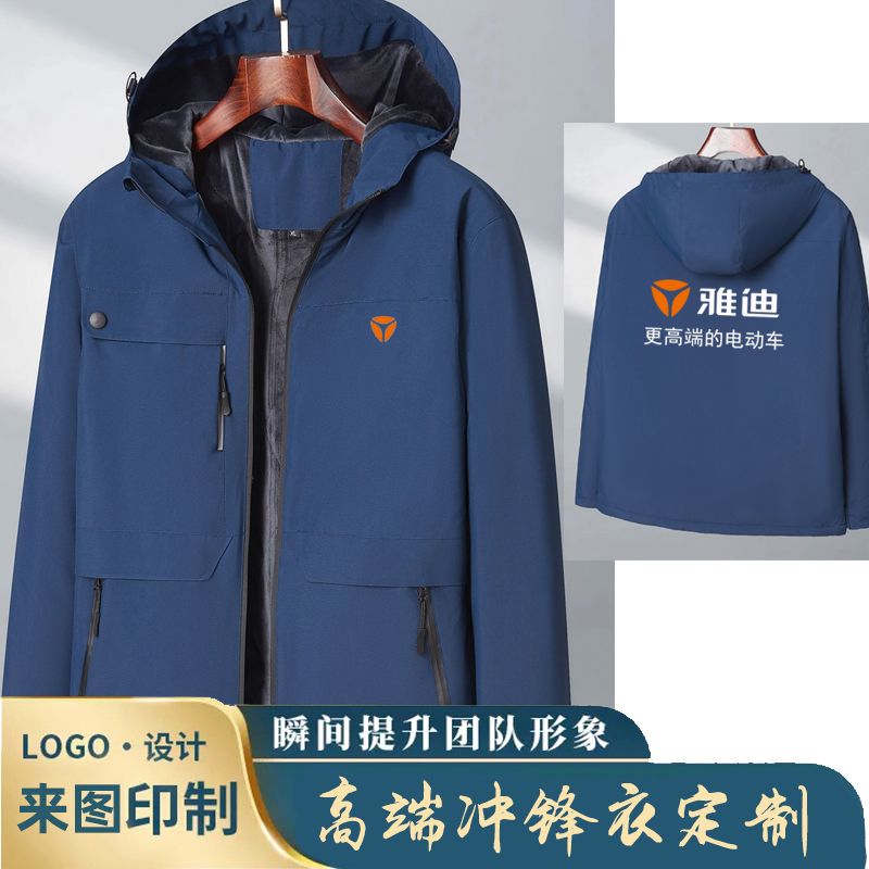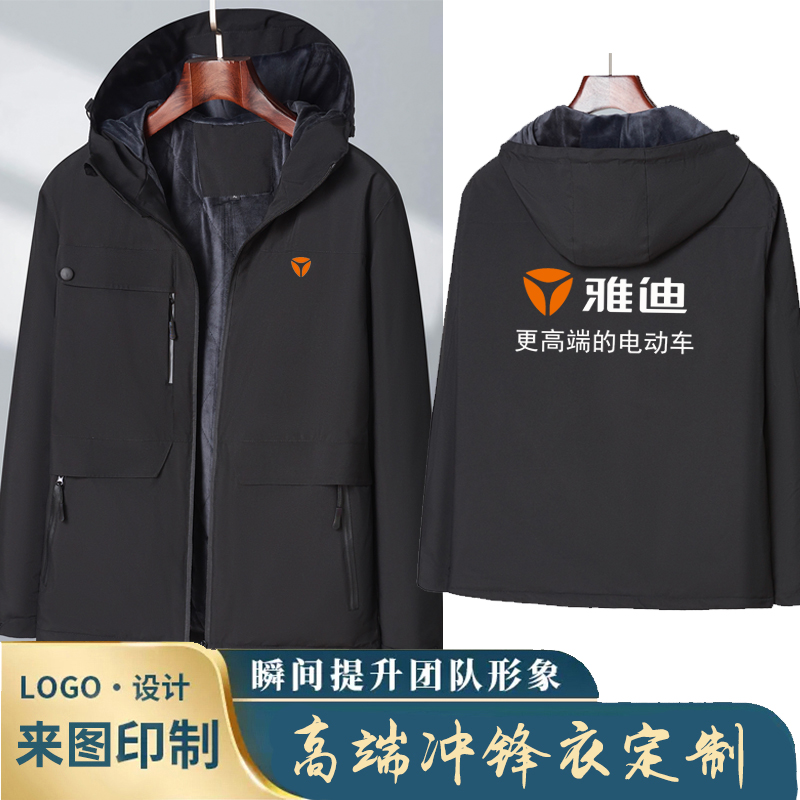 秋冬季雅迪工作服冲锋衣定制电动车加绒外套男女工装员工定制logo