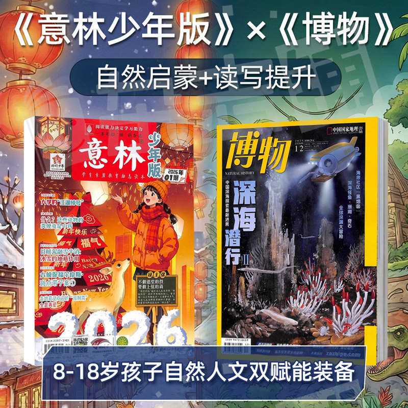 博物+意林少年版杂志订阅 2026年一月起订1年共36期全 8-18岁自然启蒙+读写提升文学文摘阅读期刊书籍 杂志铺
