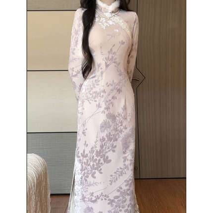 抹茶麻薯2025年冬季新款紫色优雅新中式旗袍加绒保暖年轻日常可穿