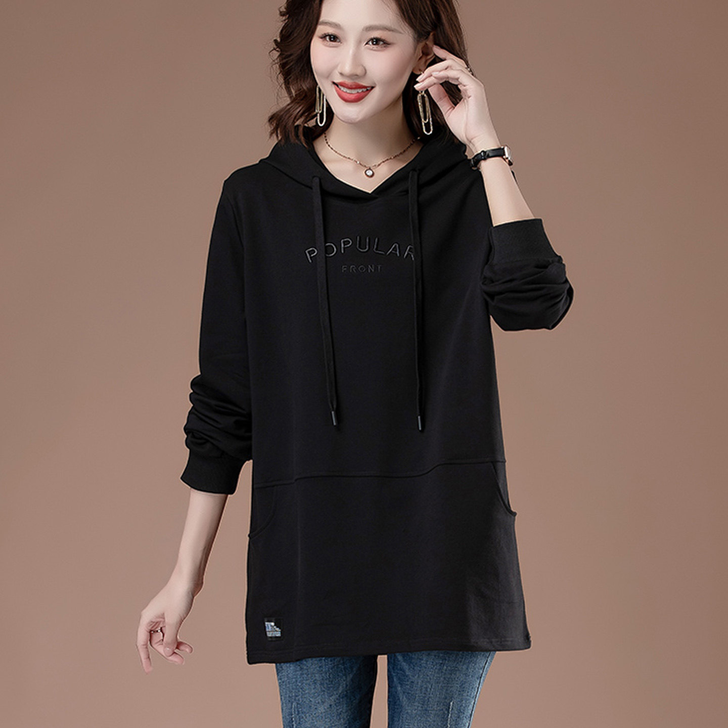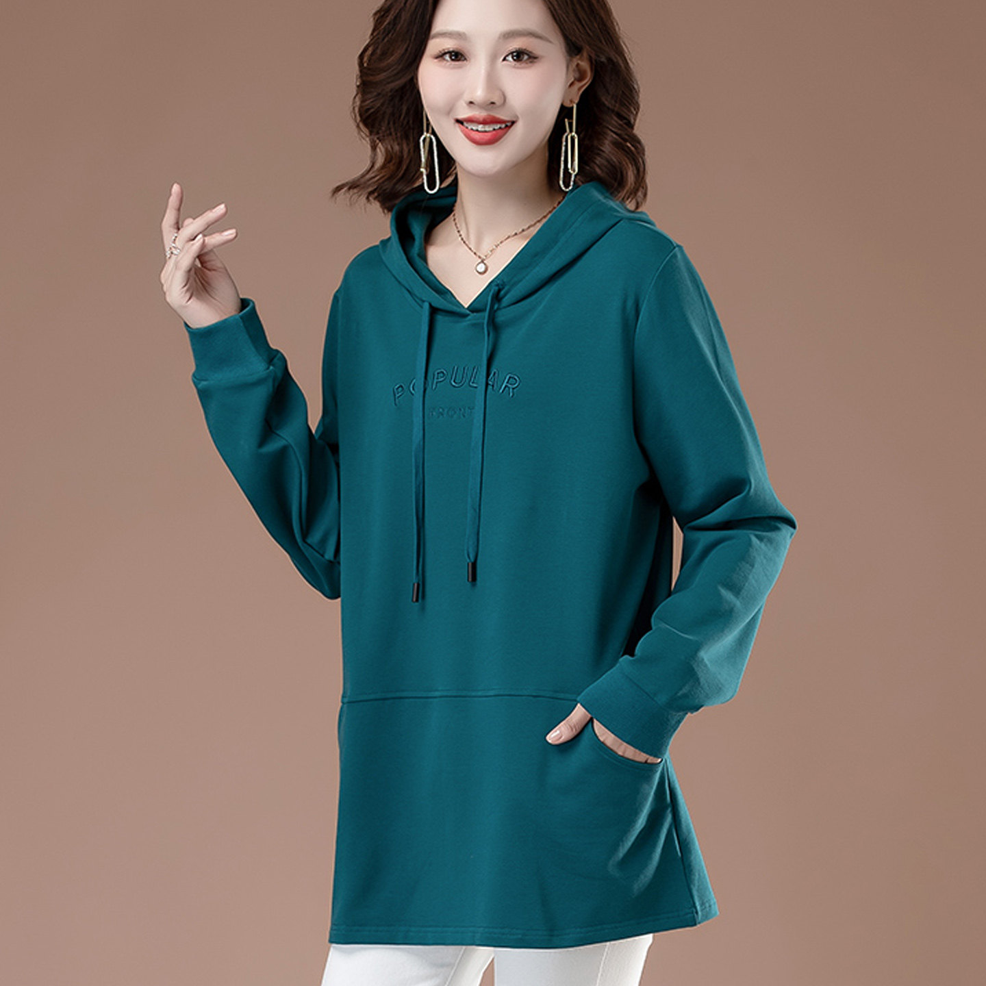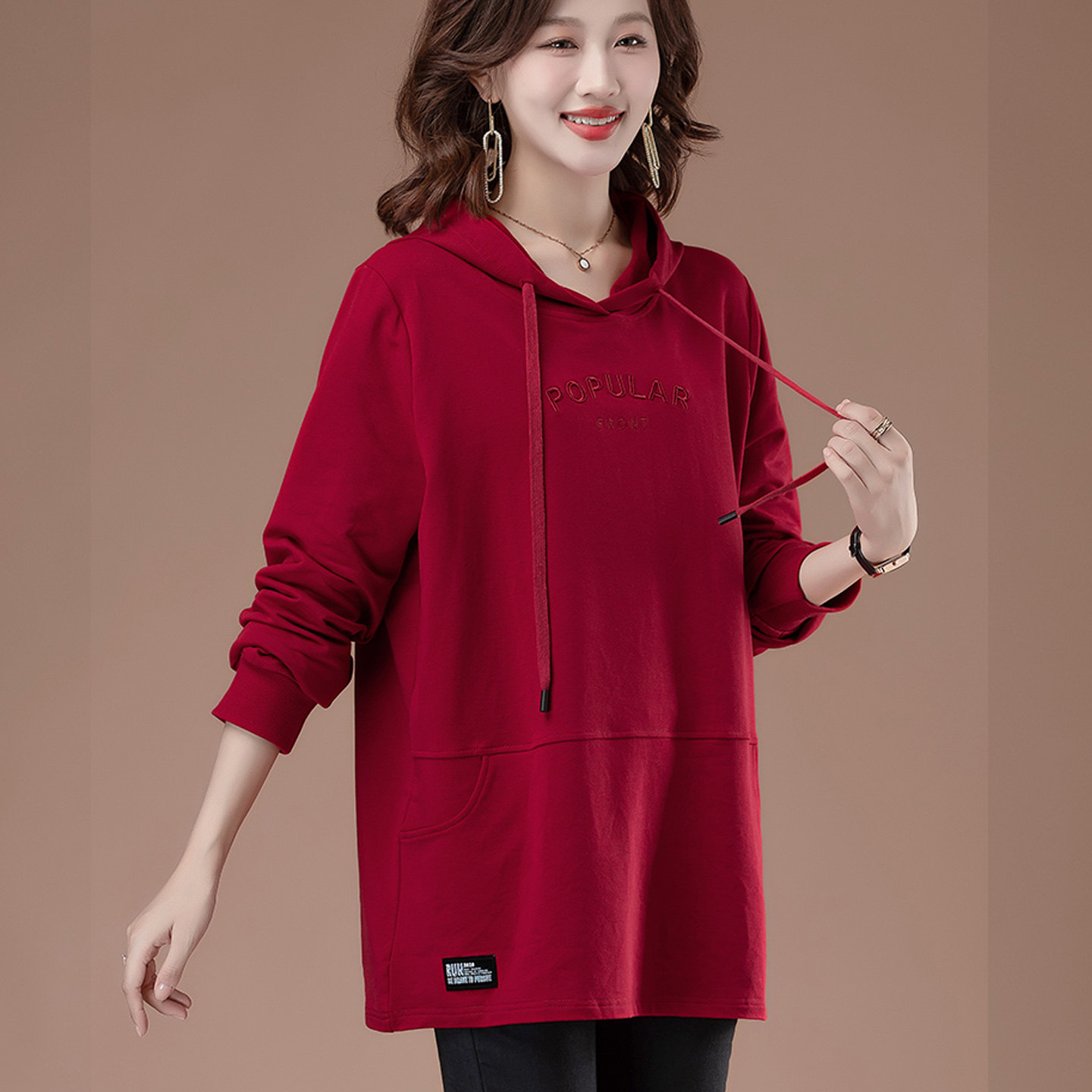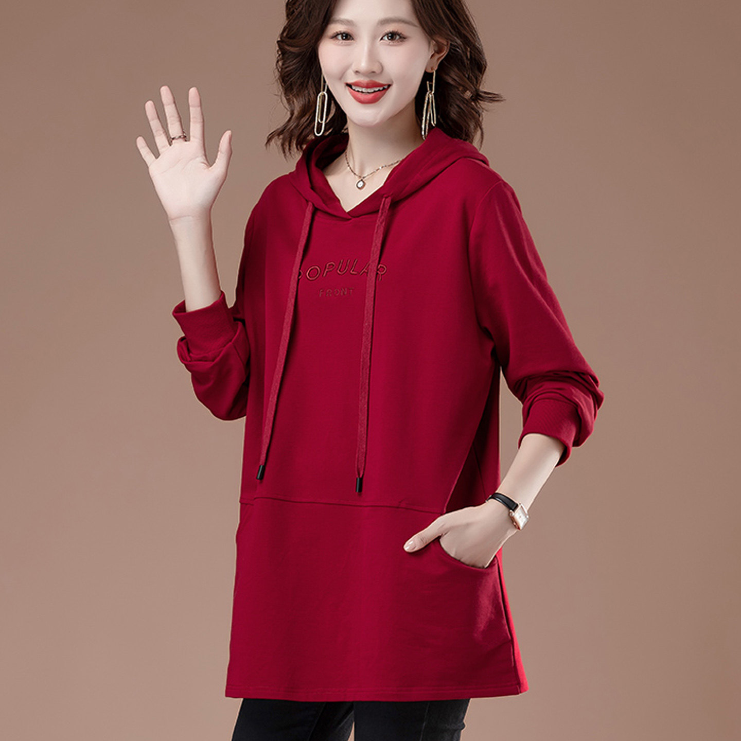 中年妈妈秋装连帽纯棉卫衣女士新款春秋薄款宽松大码减龄长袖上衣