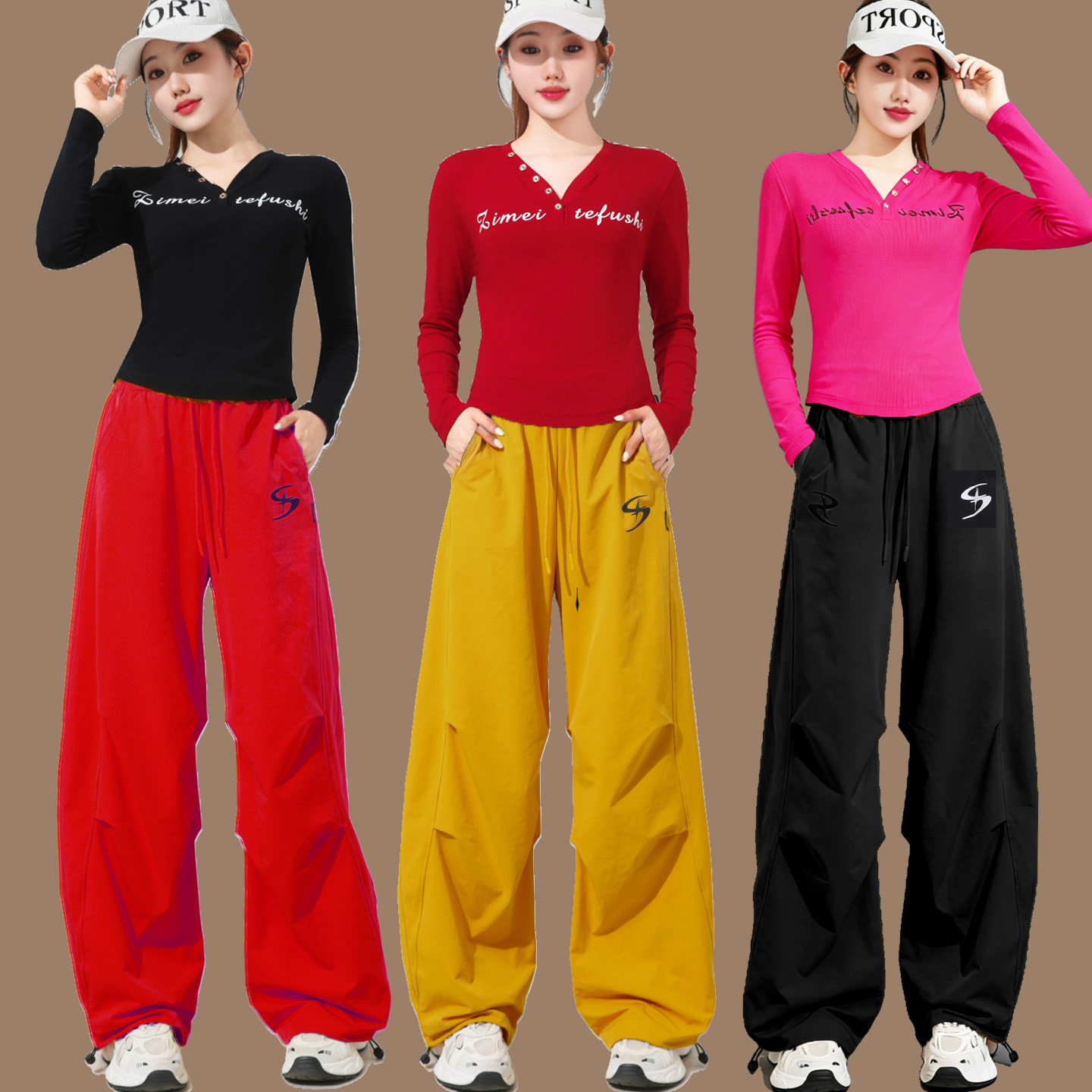 广场舞服装新款套装长袖爵士舞弯刀伞兵裤宽松曳步舞健身操跳舞服