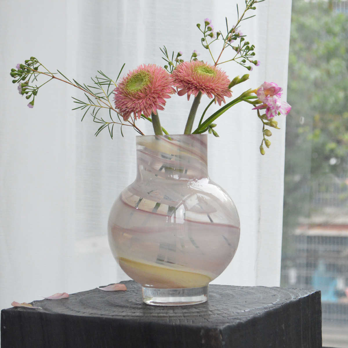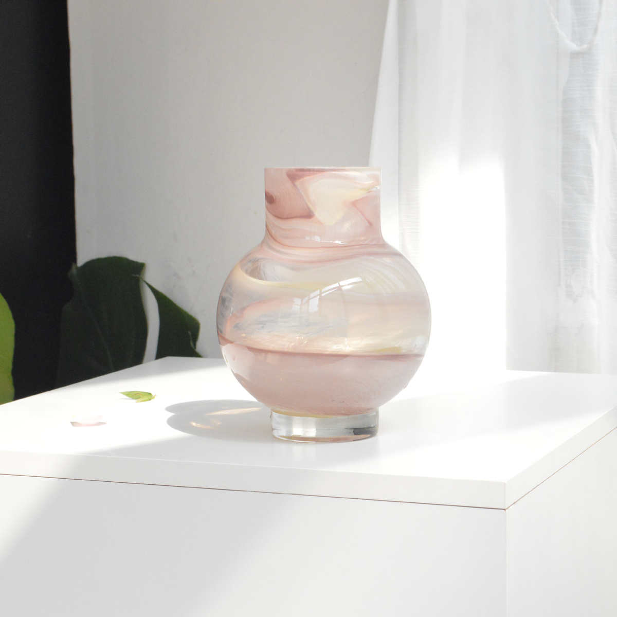 特别好看迷你北欧INS风粉色云纹桌面琉璃小花瓶家居玻璃插花器