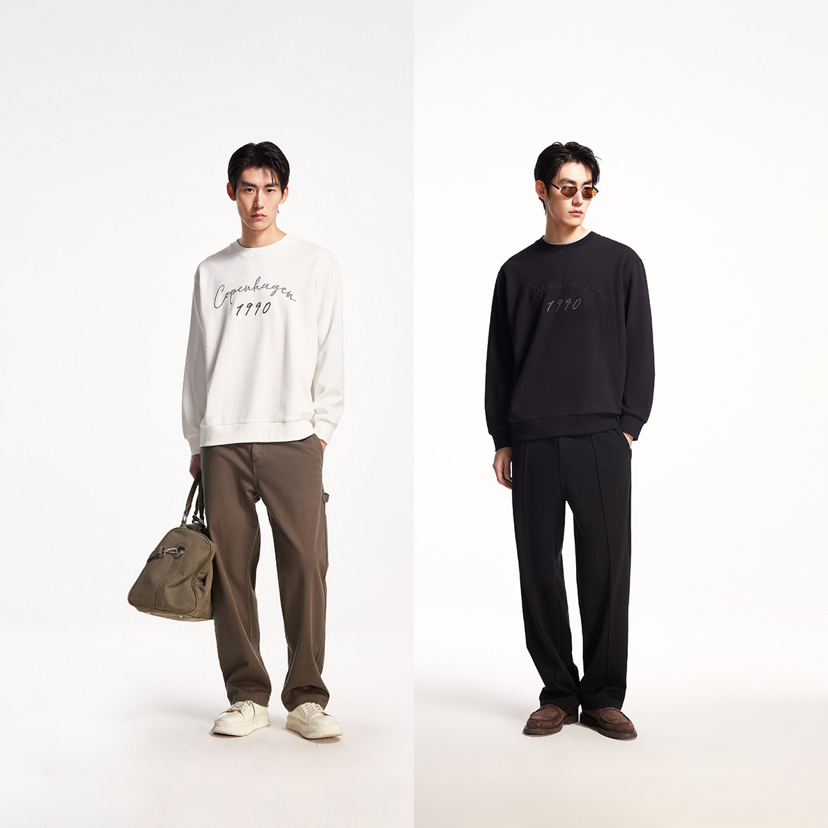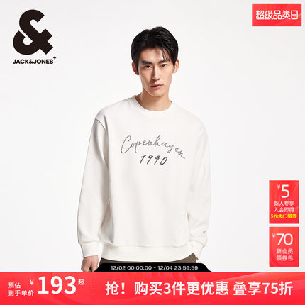 杰克琼斯男装春季潮流时尚休闲百搭舒适简约罗纹圆领宽松长袖卫衣