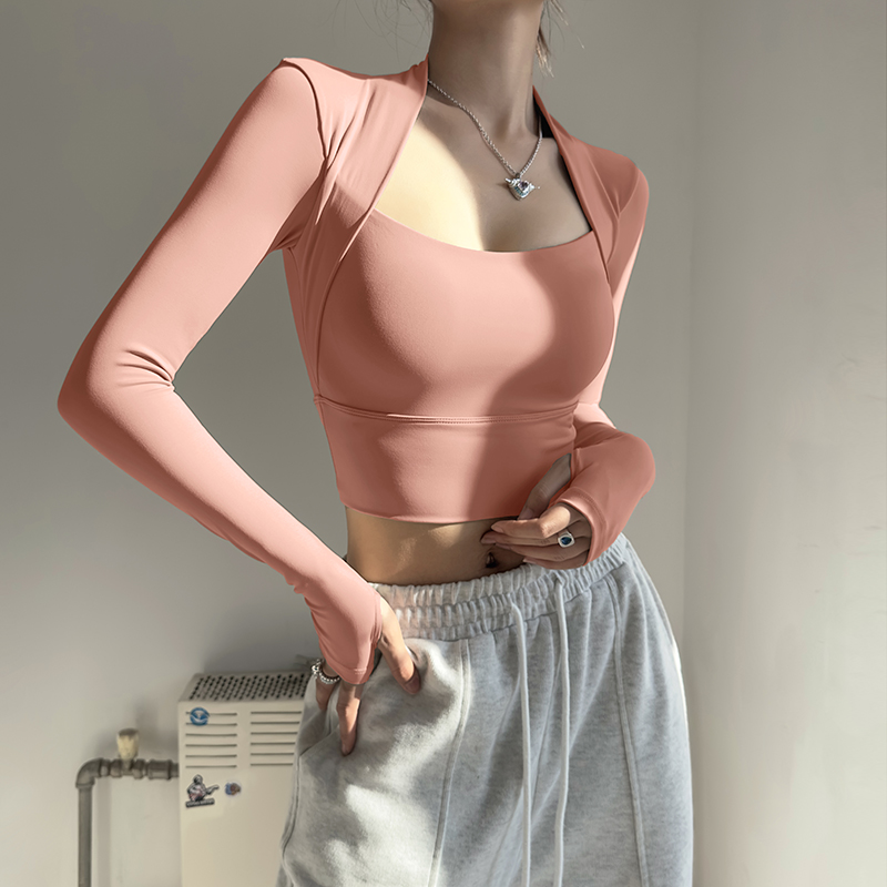 带胸垫运动长袖女高级感紧身瑜伽服春秋普拉提训练显瘦跑步健身衣