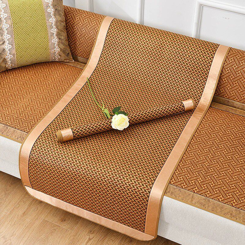 藤席沙发垫经典冰丝沙发凉席沙发罩套防滑沙发垫子靠W背巾藤席夏