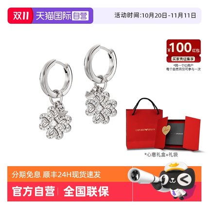 【自营】Armani阿玛尼幸运芯银色四叶草耳钉轻奢礼物送女友纯银