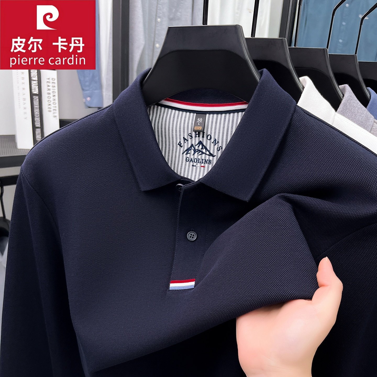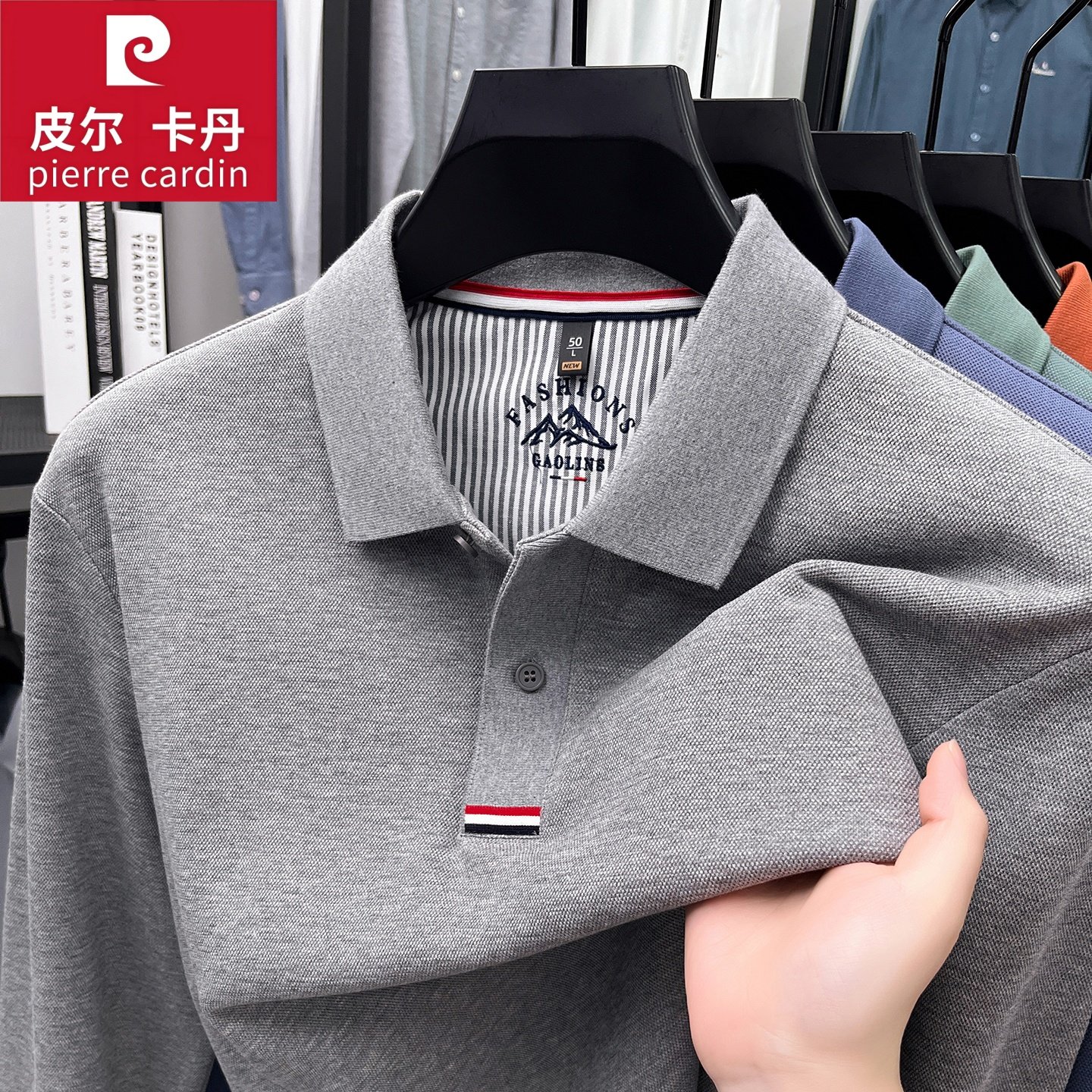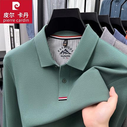 皮尔卡丹男士长袖T恤翻领纯棉高档Polo衫商务休闲丝光长绒棉上衣