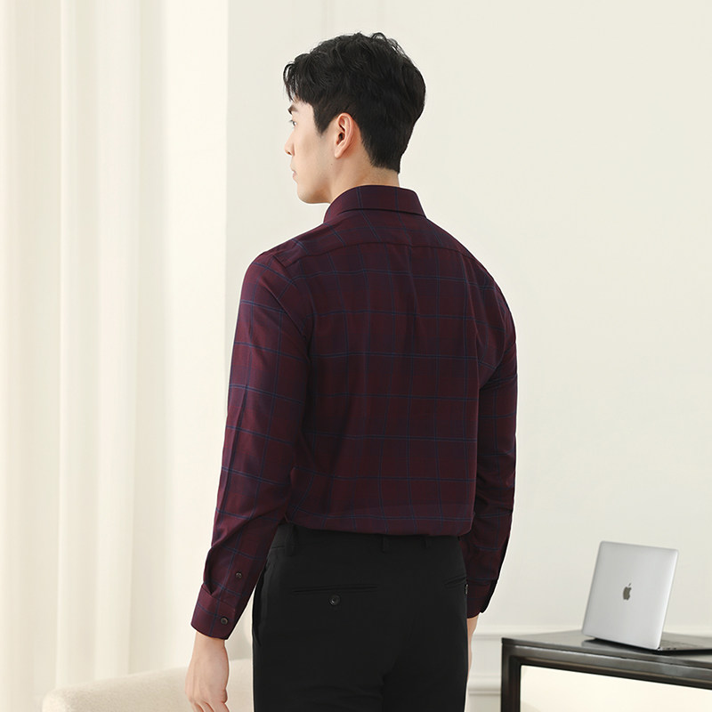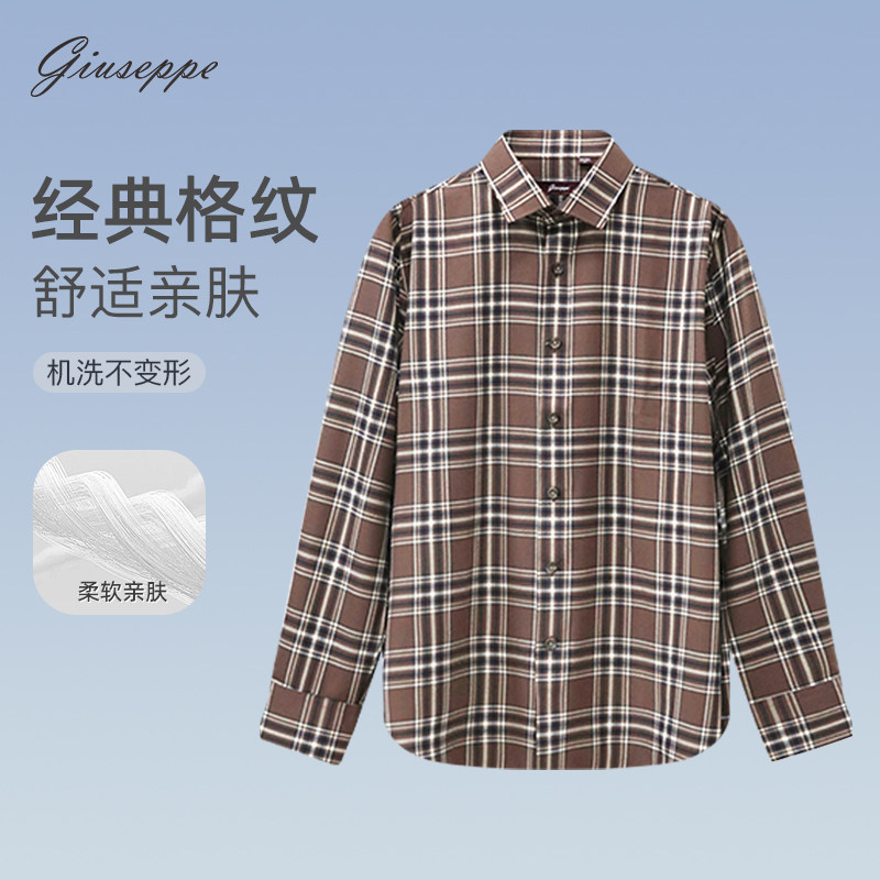 【磨毛】乔治白男士春秋长袖衬衫尖领格纹商务衬衣休闲通勤上衣