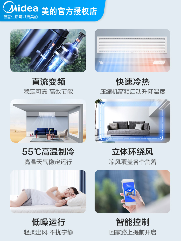 美的风管机大2匹3P客厅1.5匹卧室一拖一中央空调35T-90T变频冷暖
