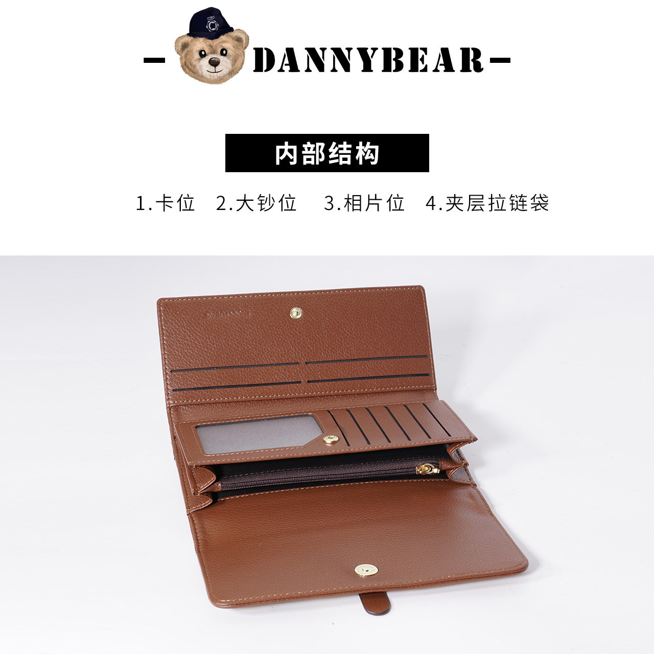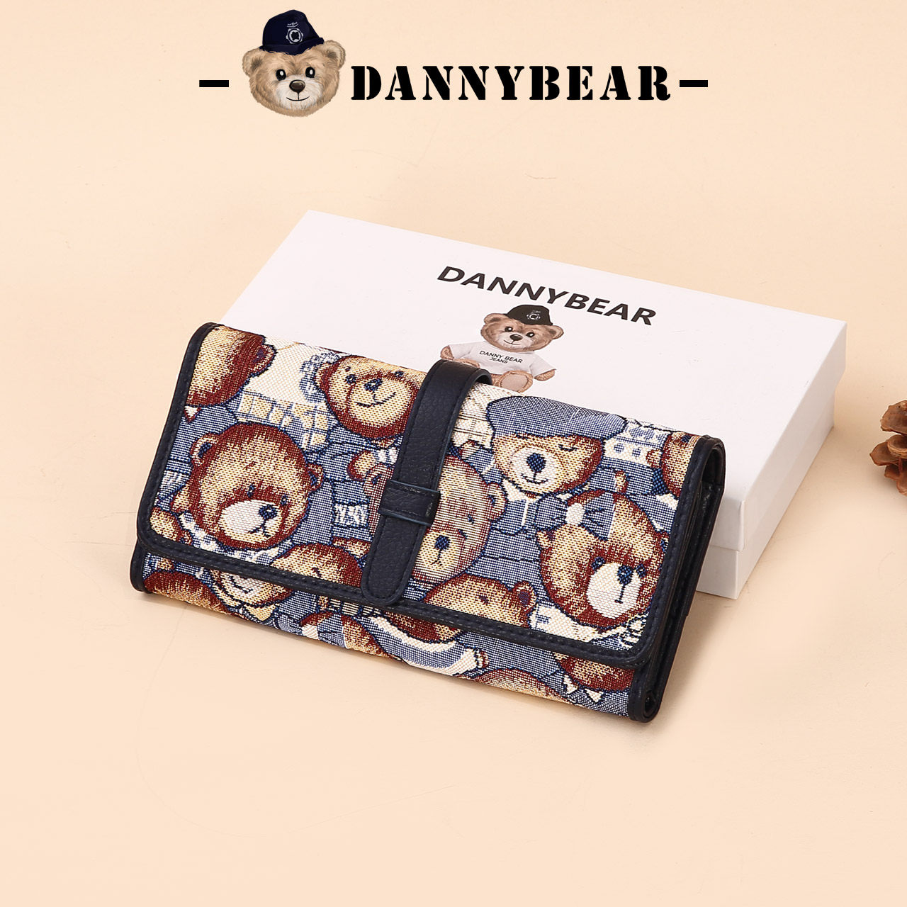 丹尼熊钱包钱夹三折女款长款钱包通勤休闲风小熊时尚钱包3822009