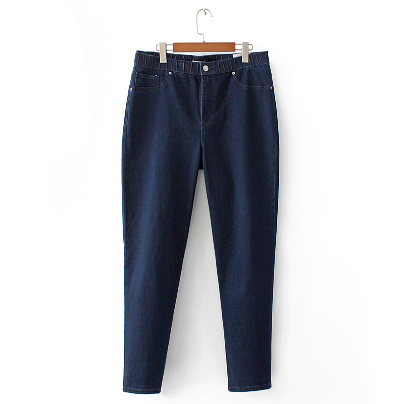 特大码女士牛仔裤300斤胖MM四季穿简约小直筒高腰棉弹力牛仔长裤
