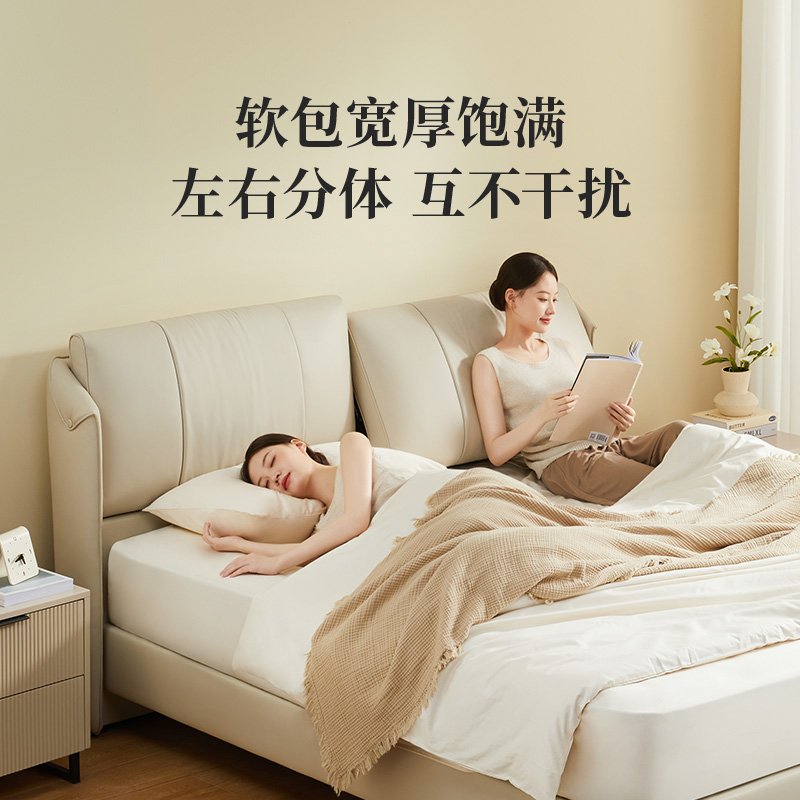 【MD3】躺躺+白骑士典藏喜临门头层牛皮现代简约可调节软包双人床
