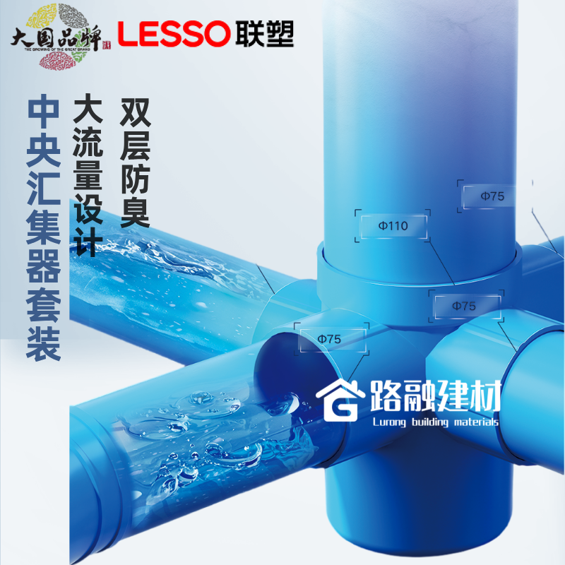 联塑中央排水汇集器同层排水多通道地漏卫生间防臭分水器75*75