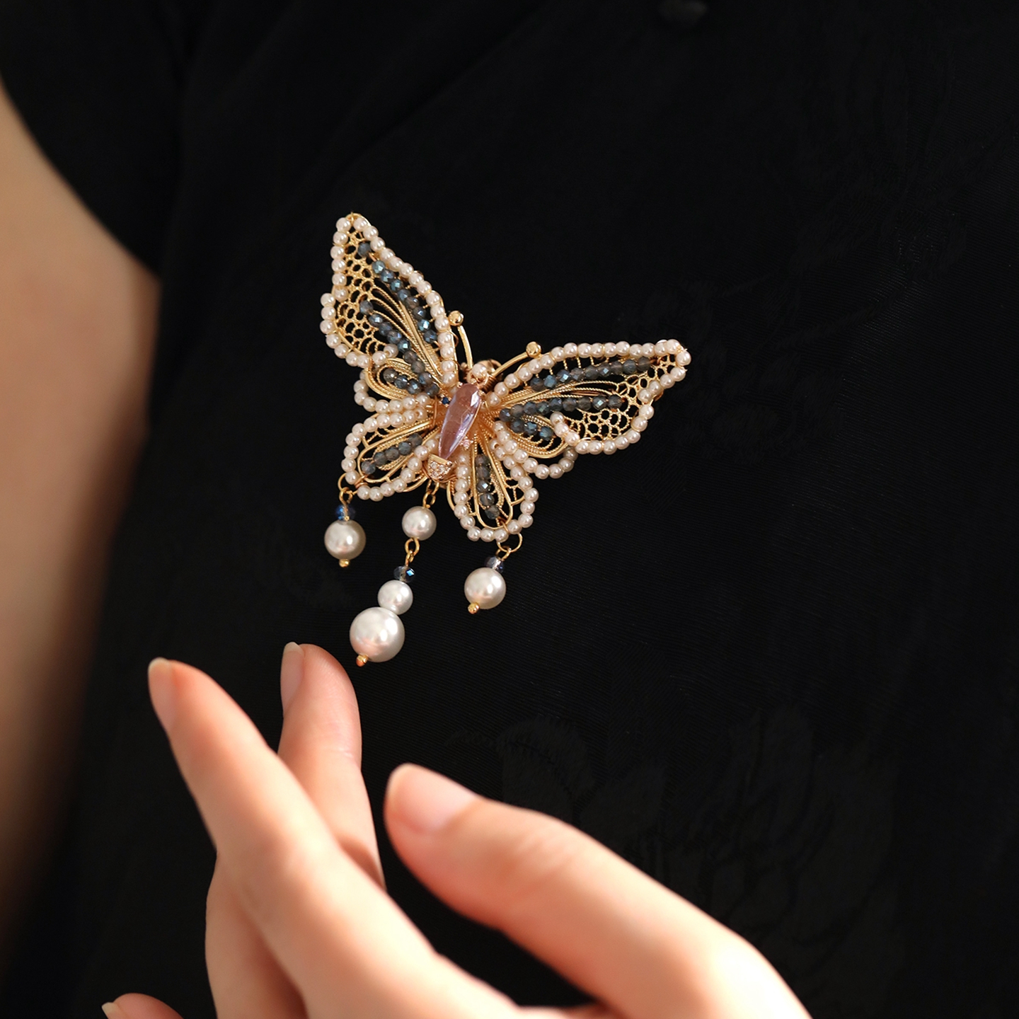 芊墨夏禾国风蝴蝶胸针秋冬小众设计感古典新中式胸花大衣别针装饰