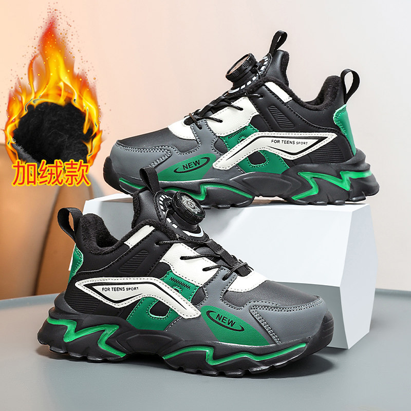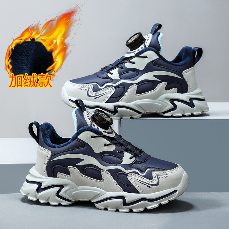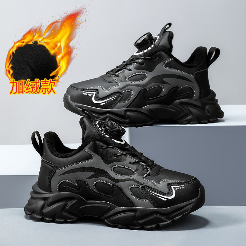 ABC SHIELD男童棉鞋冬季加绒保暖二棉鞋中大童皮面防水儿童跑步鞋