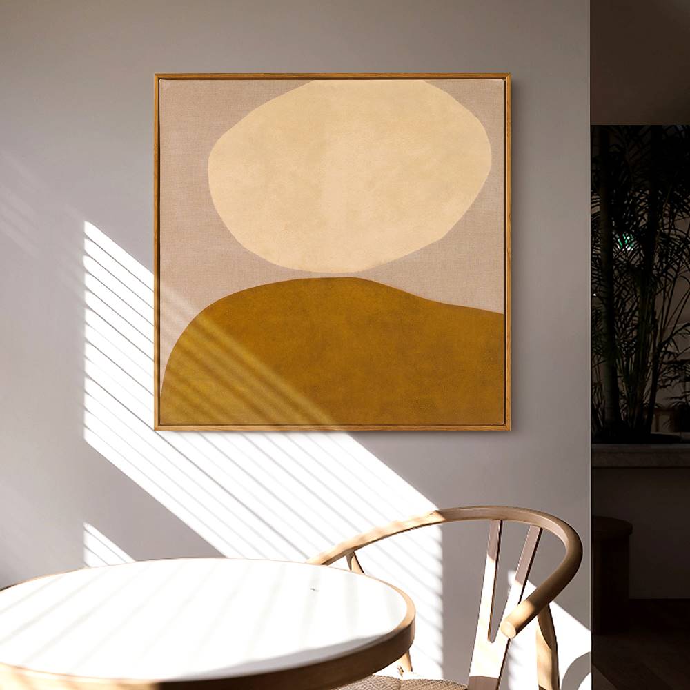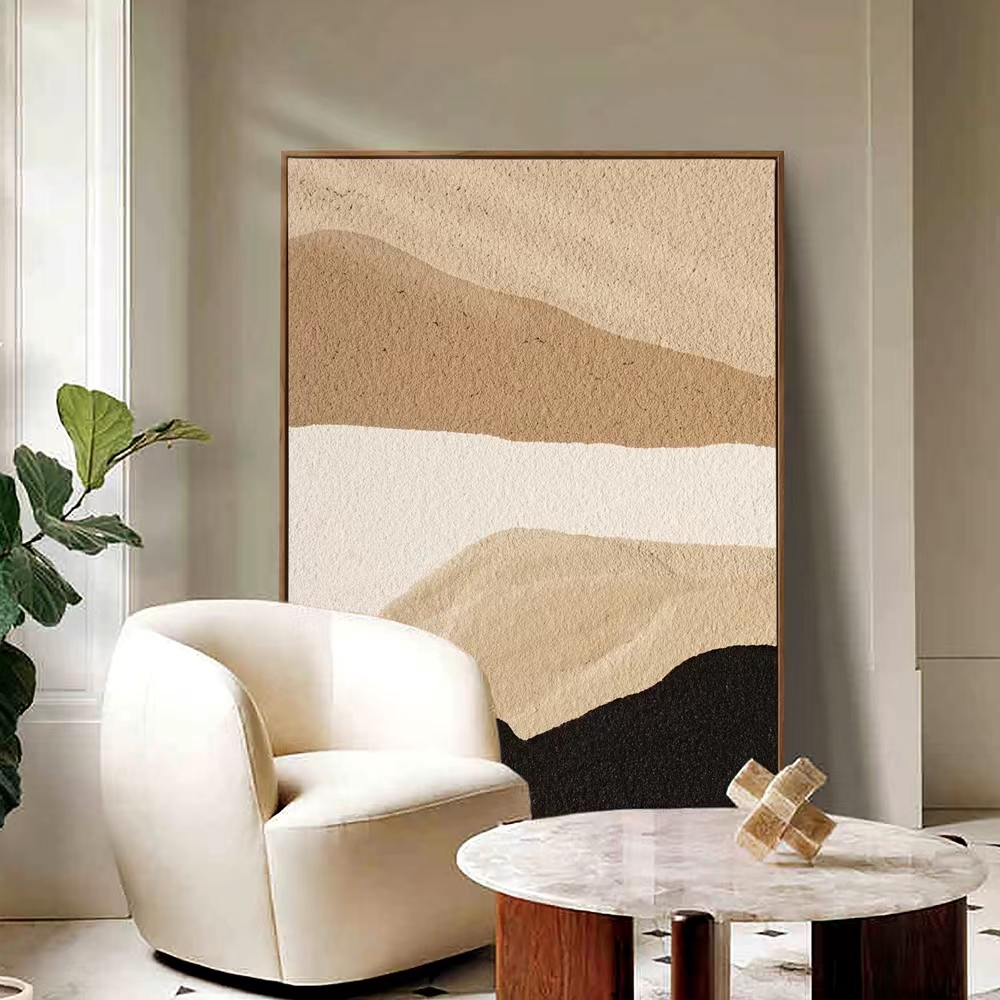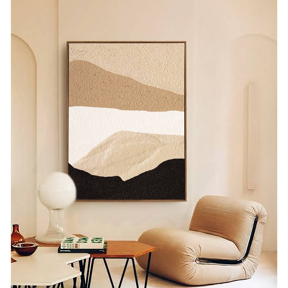 原木风客厅沙发背景墙挂画简约抽象暖色块奶油风装饰画日式侘寂风