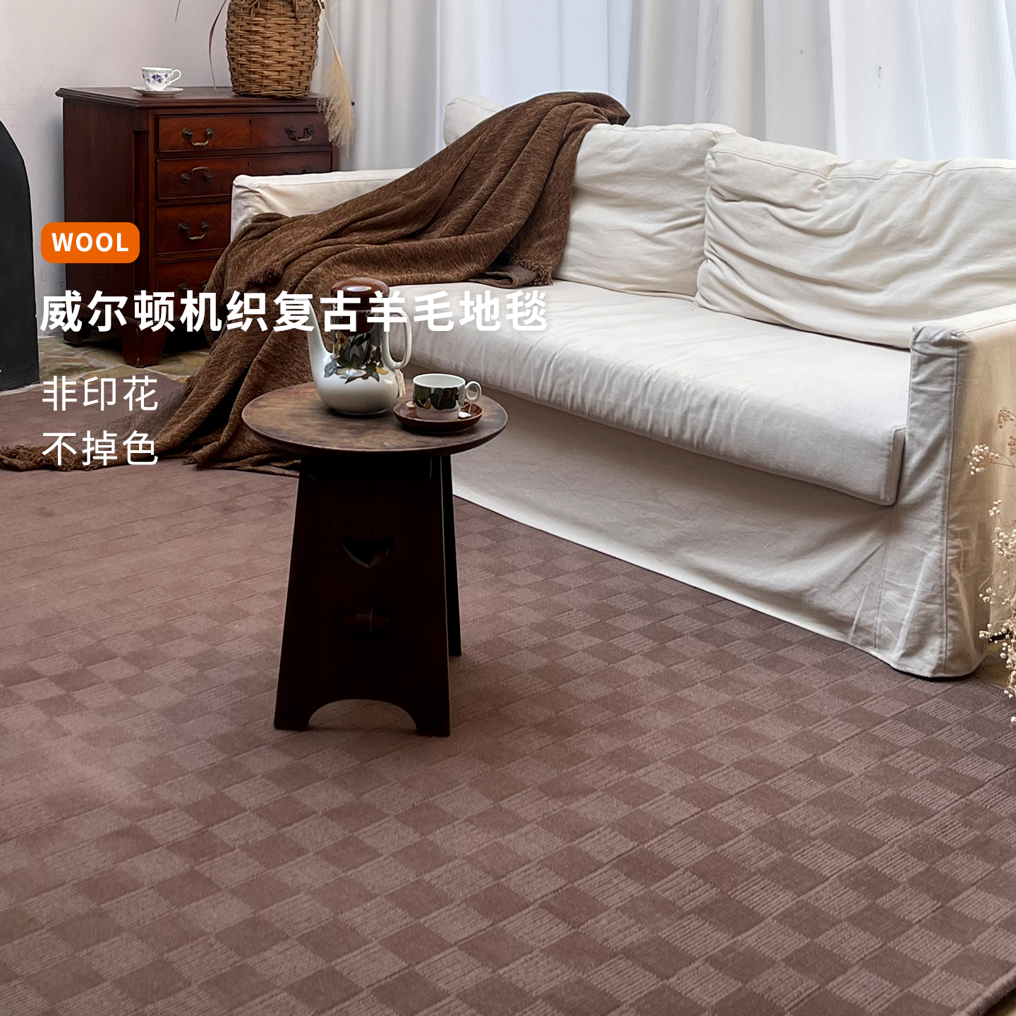 复古羊毛地毯轻奢中古风卧室客厅地垫黑色蓝色红色进口羊毛编织