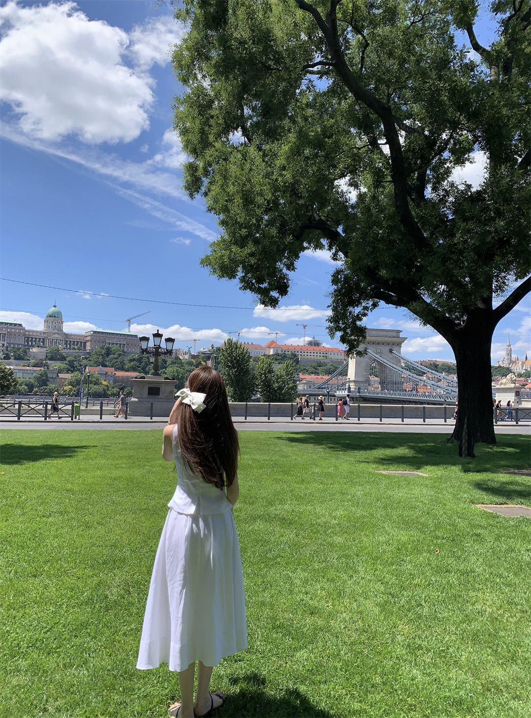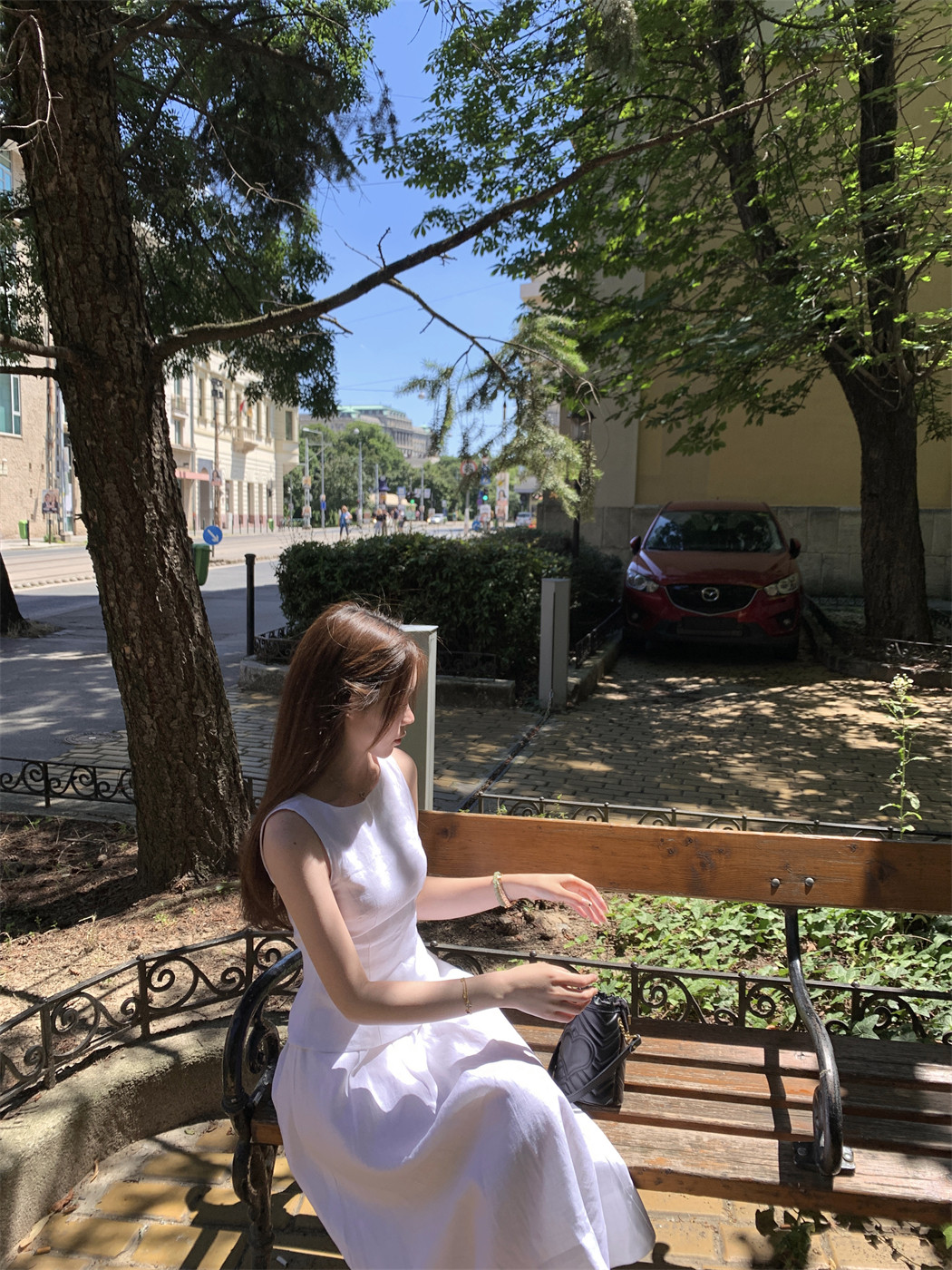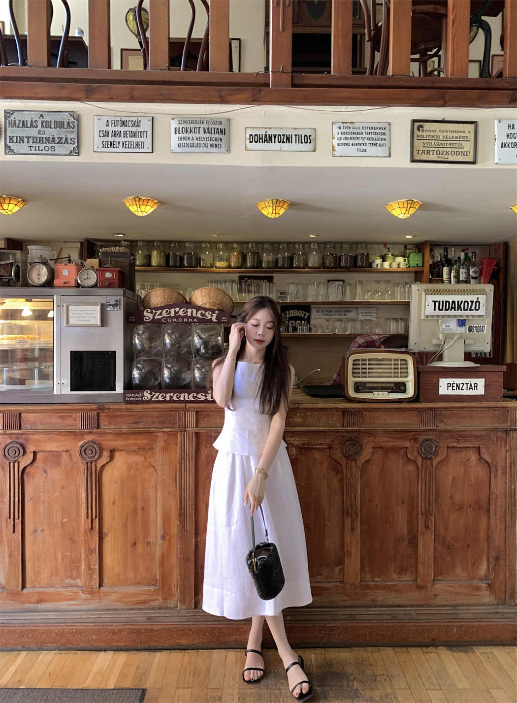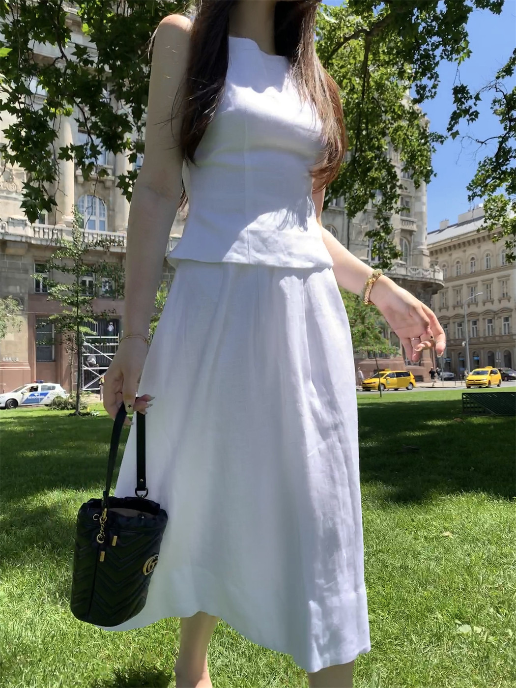 BOOMLIMIT 毕业套装 亚麻无袖收腰上衣法式A摆半裙套装