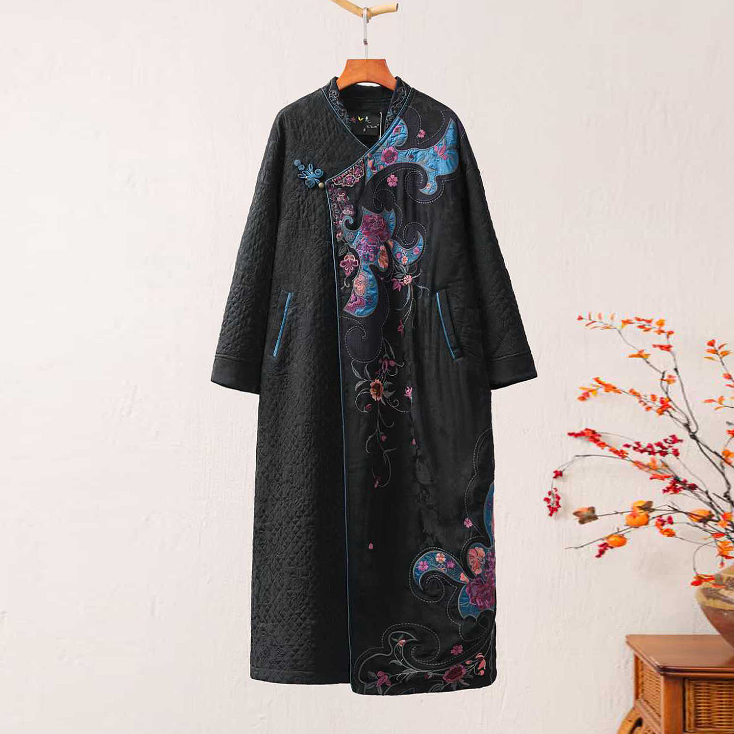 原创新中式国风中长款复古重工刺绣民族风棉衣绣花棉服盘扣棉袄女