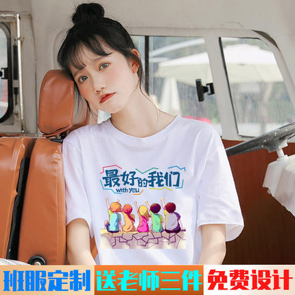 班服定制初中高中学生纯棉短袖女毕业服装同学聚会T恤团体体恤男