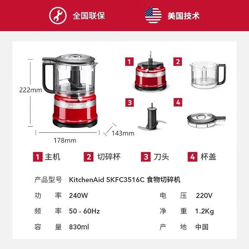 KitchenAid/凯膳怡切碎机电动小型绞肉机家用多功能料理机 3516