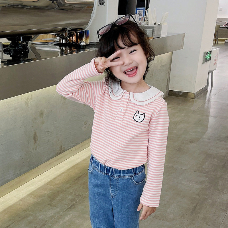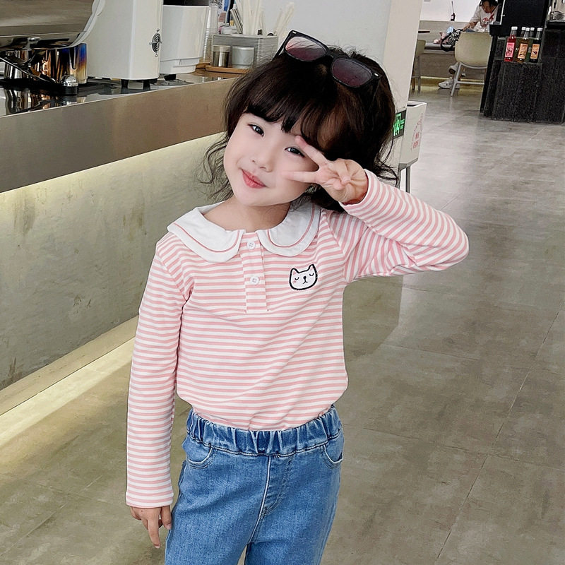 女童POLO衫纯棉秋装韩范中大童长袖翻领春秋儿童打底衫白衬衫上衣