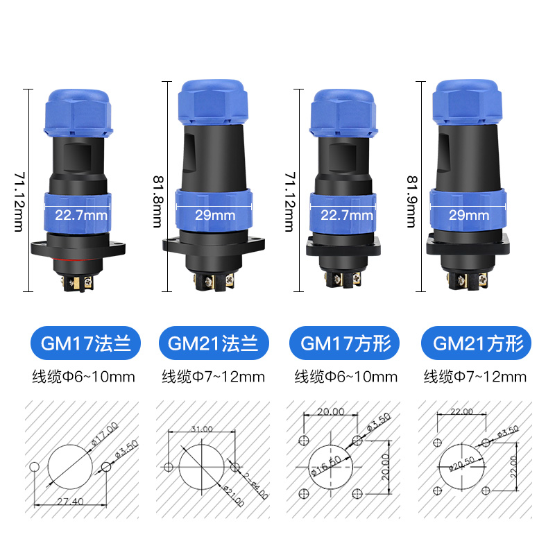 防水航空插头免焊接公母对接