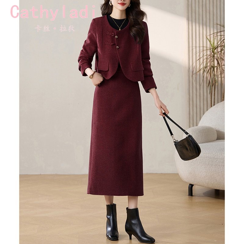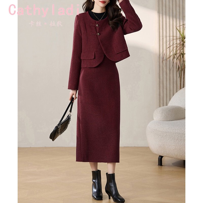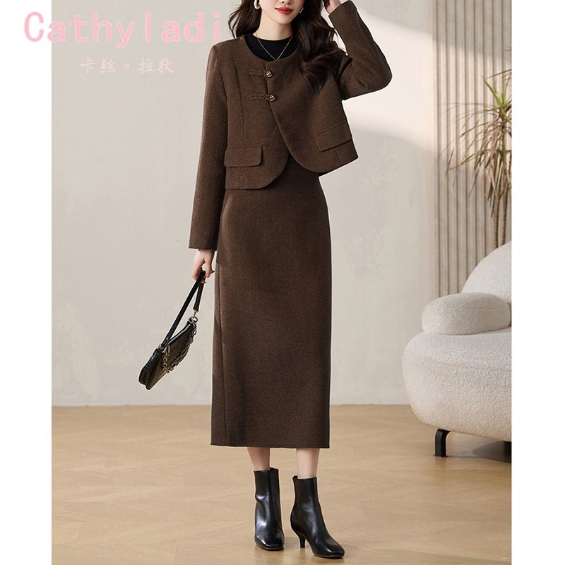 CATHYLADI气质法式名媛显瘦套装2025冬季小香风外套半身裙两件套