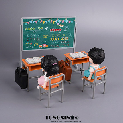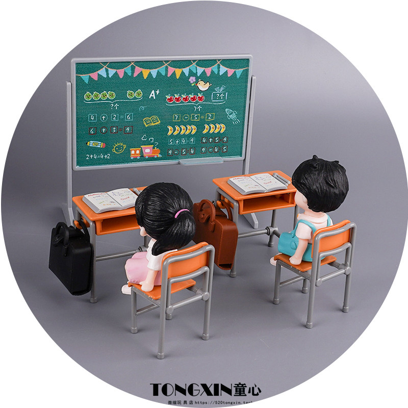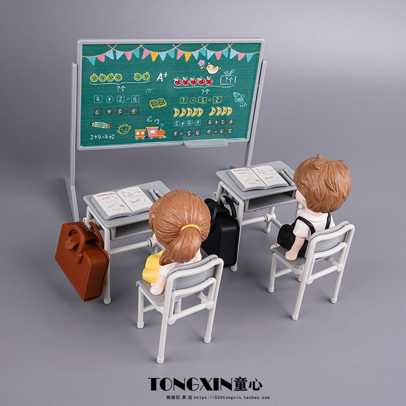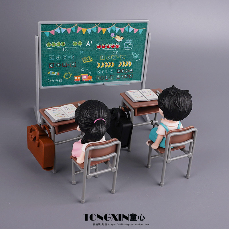 微缩迷你学校教室黑板课桌椅子仿真书包书本模型娃娃屋过家家玩具