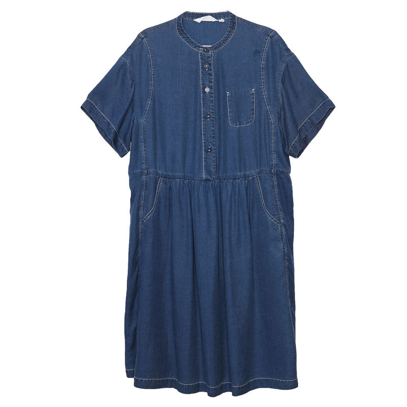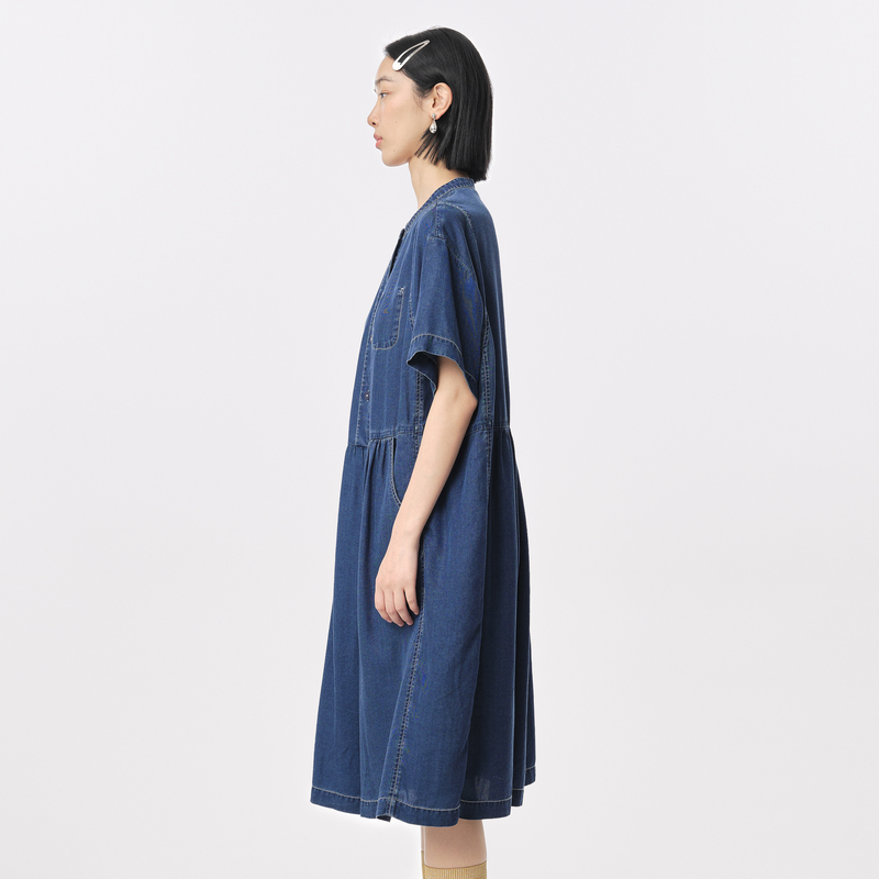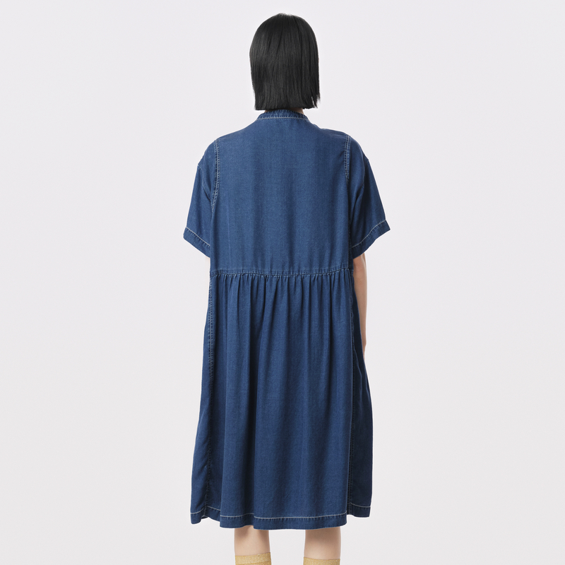MOVEUP幻走2024夏季新款.FUN系列小圆领撞色明线设计师牛仔连衣裙