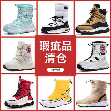 瑕疵品清仓女士中筒雪地靴防滑防水棉鞋冬季加绒保暖靴子捡漏棉靴