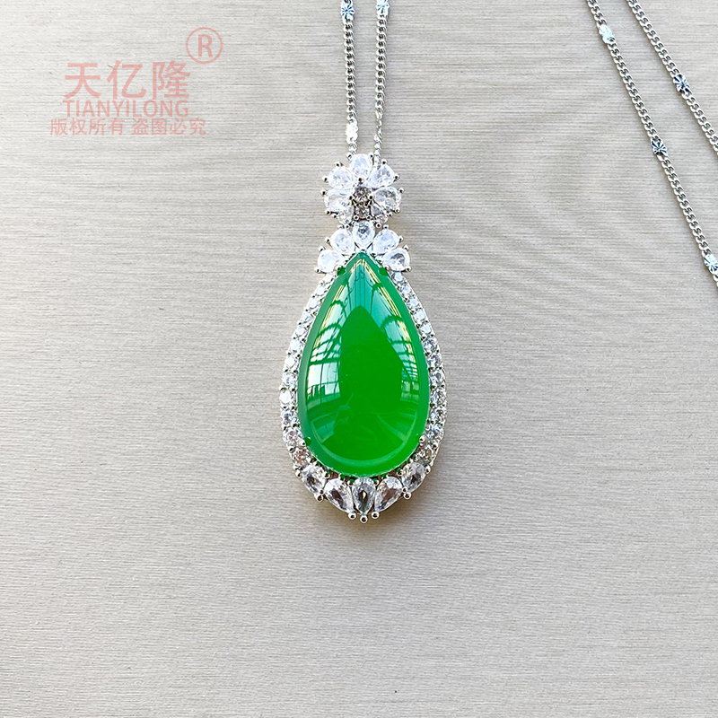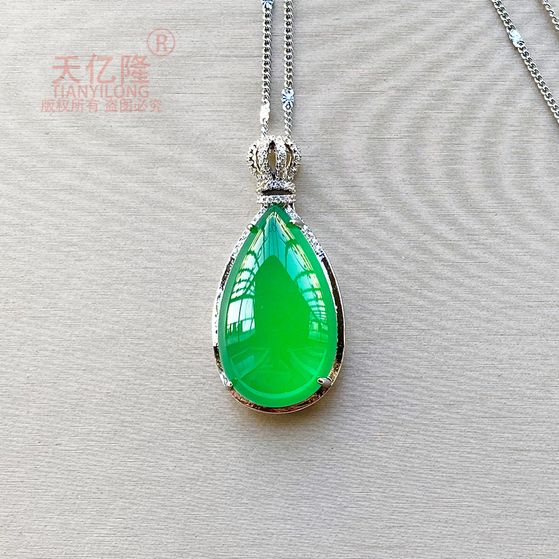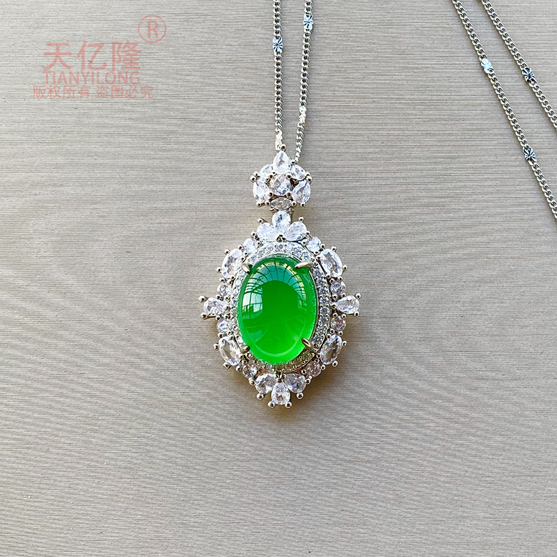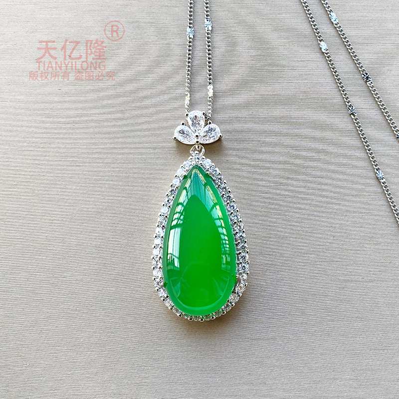 天然玉髓吊坠女款翡翠色玉石项链锁骨链新中式国风玛瑙项链子挂件