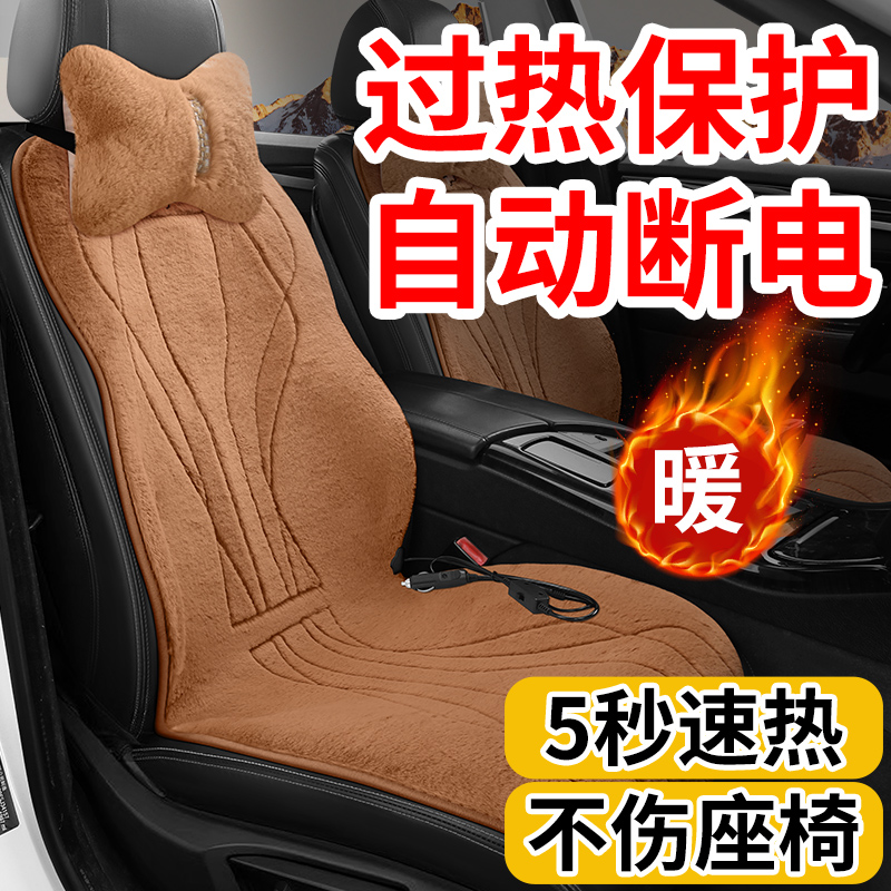 冬季毛绒汽车坐垫电加热保暖小白狗卡通可爱12V24V单片车载座垫