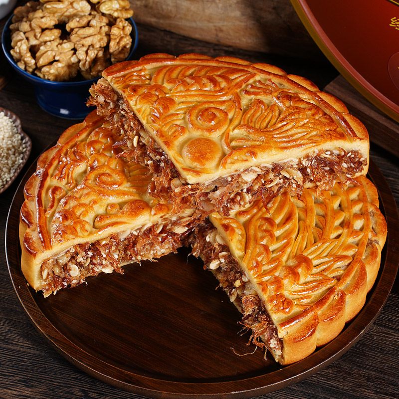 广式老式火腿伍仁金腿五仁叉烧手工大月饼礼盒包装新鲜日期