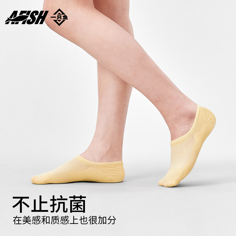 一只鱼船袜女款夏季薄款防臭吸汗透气抗菌船袜防滑不掉跟休闲袜子