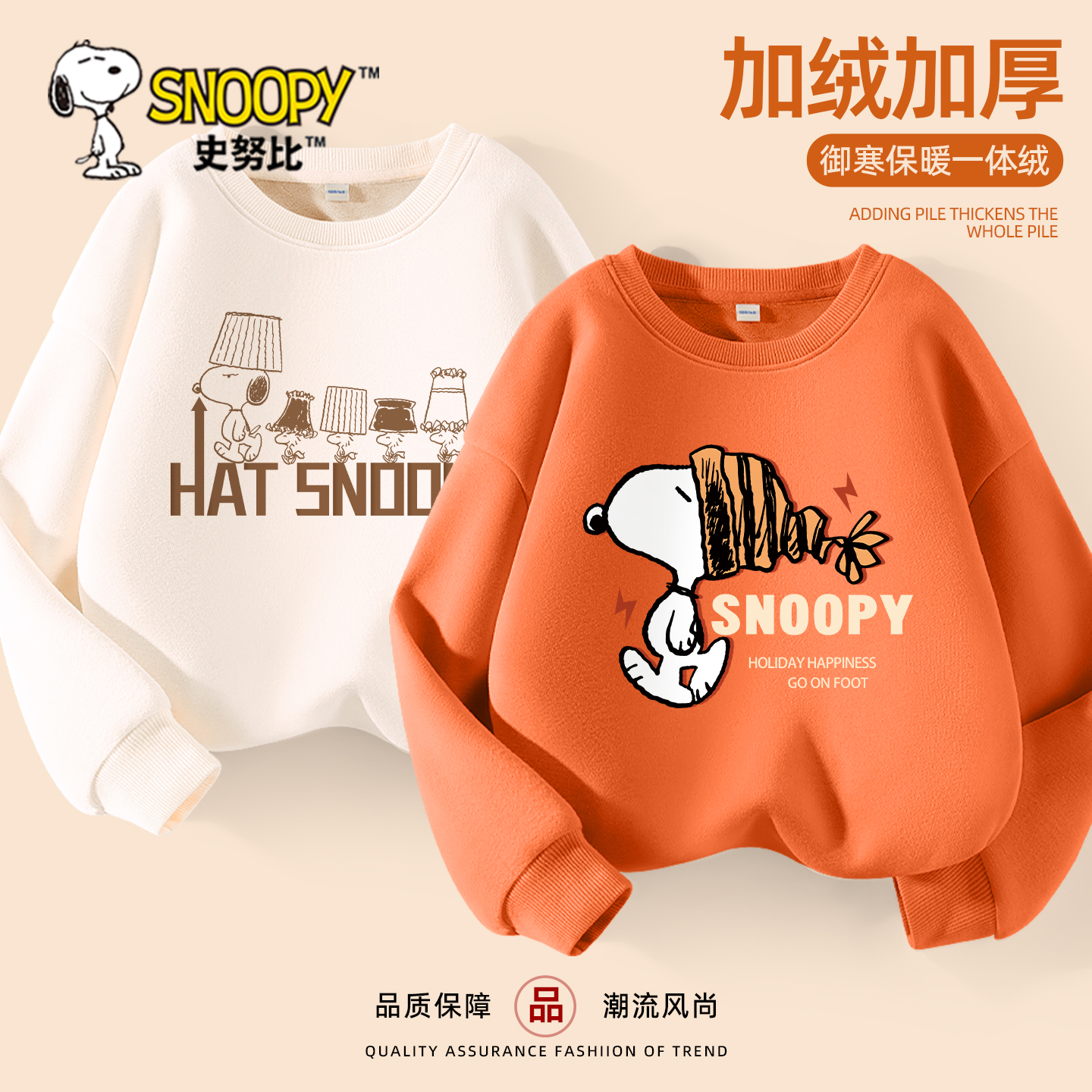 史努比男童加绒卫衣秋冬款男大童圆领打底衫男孩保暖上衣儿童衣服
